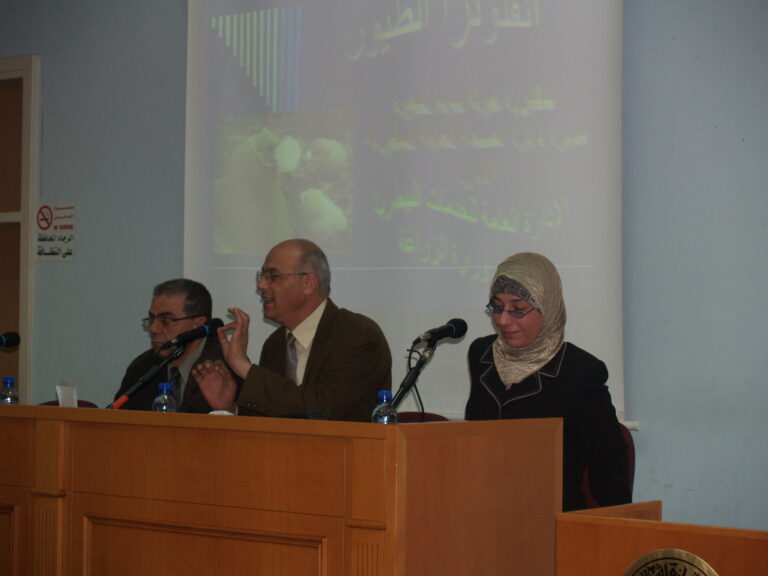 وقد عقدت هذه الندوة في قاعة الفاروق عمر بن الخطاب صباح الاثنين الموافق 6/3/2006، حضر الندوة أعضاء الهيئة الإدارية والاستشارية في الجمعية ، كما حضر الندوة موظفات وموظفي الجمعية ومتدربات الأقسام التعليمية. في بداية الندوة رحبت رئيسة اللجنة الثقافية الآنسة نهلة بسيسو بالدكتور حسام الريماوي وشكرت إتحاد لجان العمل الصحي على تعاونه مع الجمعية وإيفاده الدكتور حسام الريماوي للحديث عن أنفلونزا الطيور. وقد تحدث المحاضرون عن مرض أنفلونزا الطيور، تعريف بهذا المرض، طرق العدوى، وانتشار هذا المرض، ثم دار حوار مفتوح حول هذا المرض. وفي نهاية الندوة تقدمت رئيسة اللجنة الثقافية الآنسة نهلة بسيسو بالشكر الجزيل للمحاضرين على المعلومات القيمة والمفيدة التي قدموها في هذه الندوة.