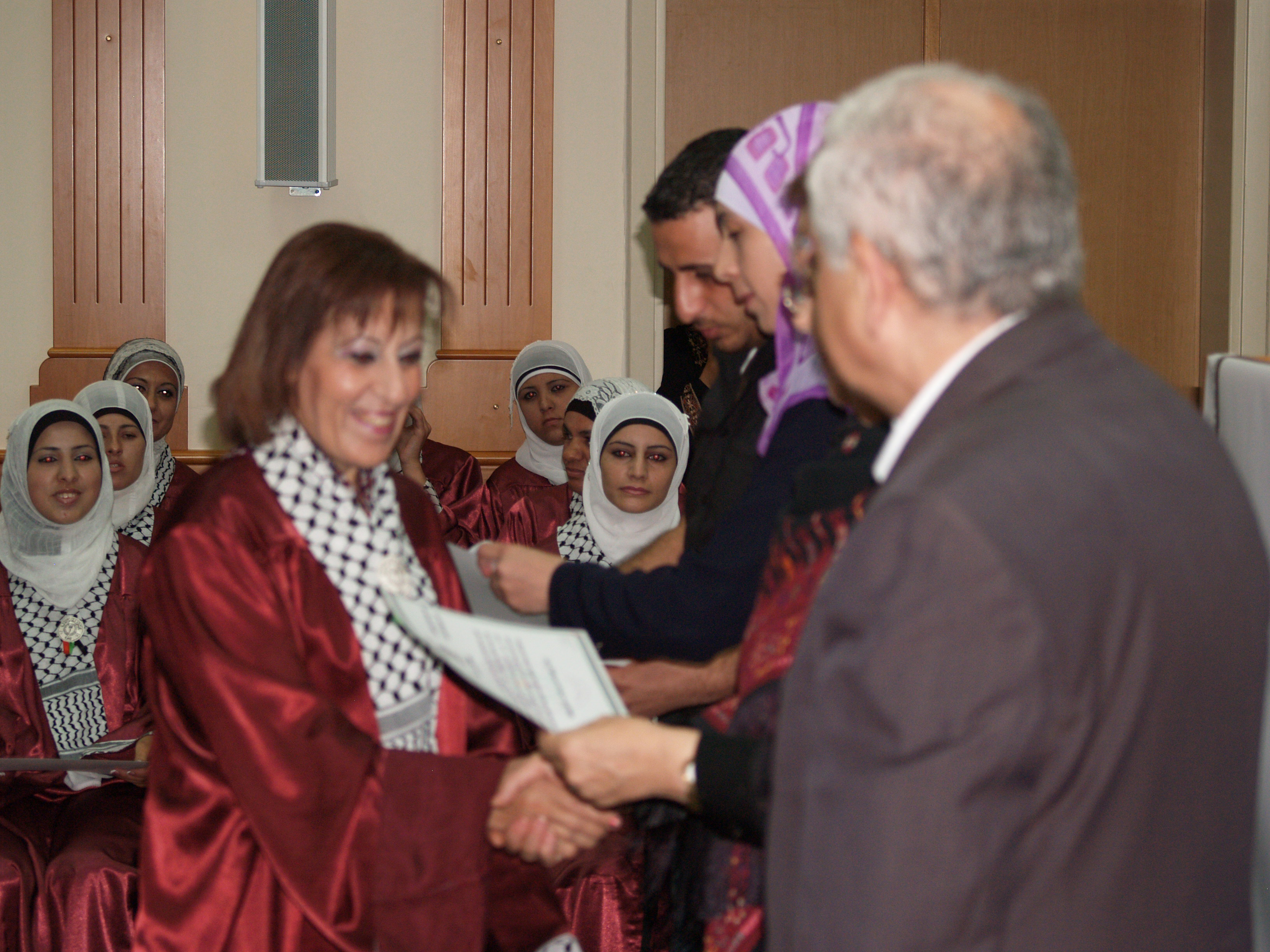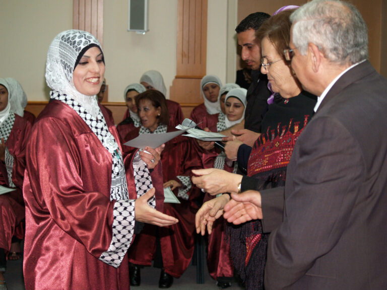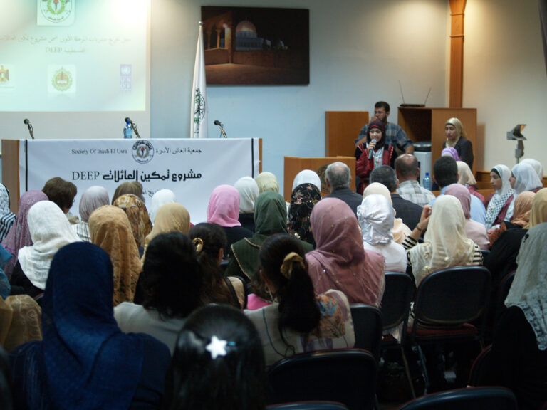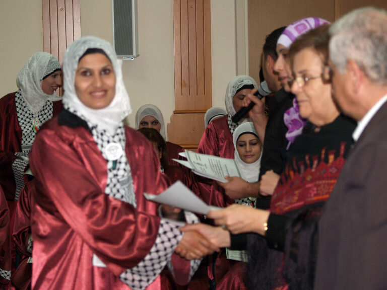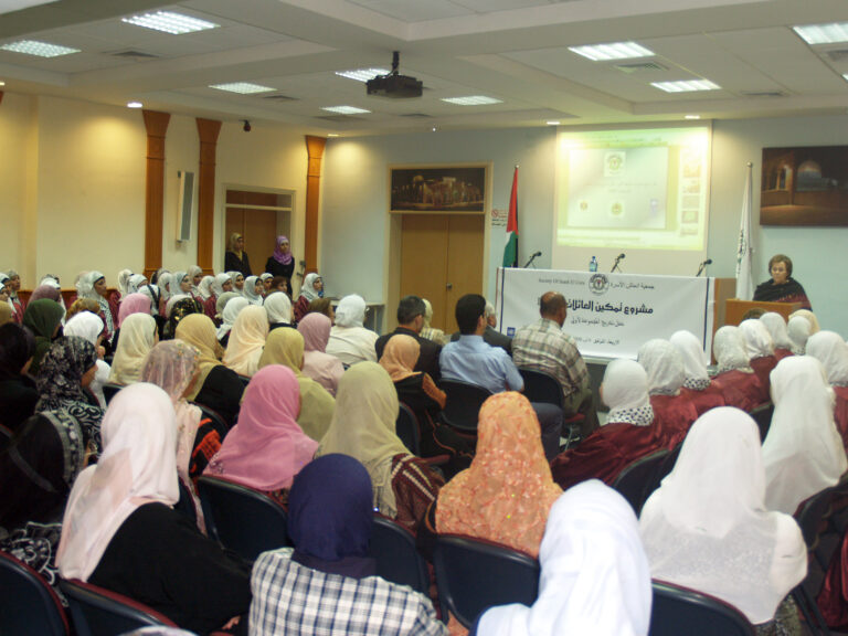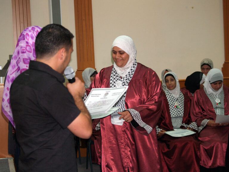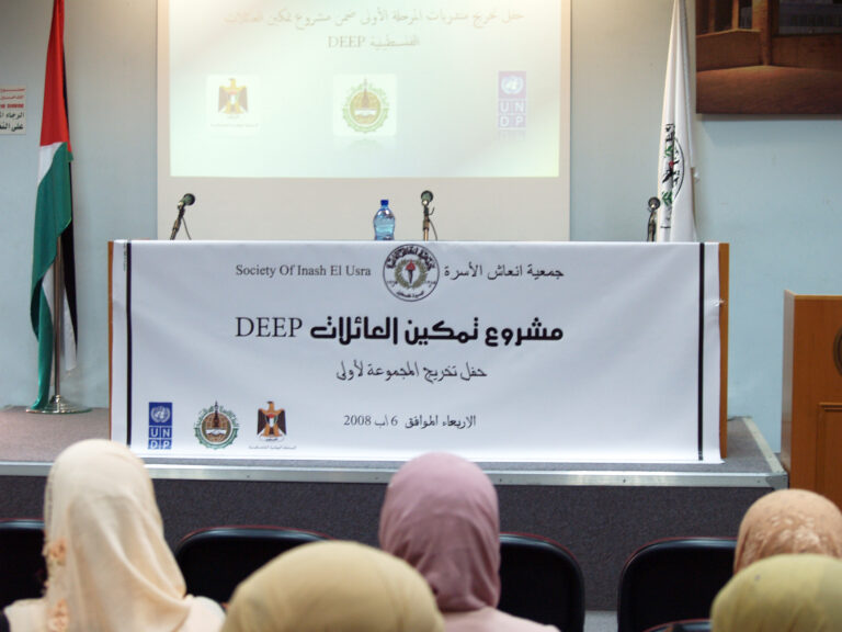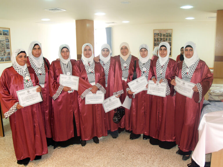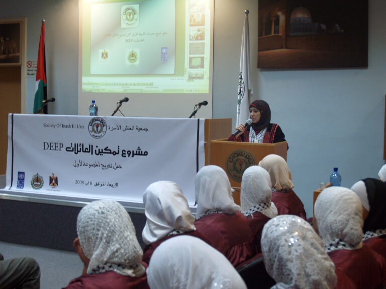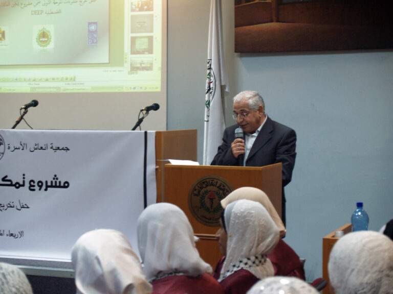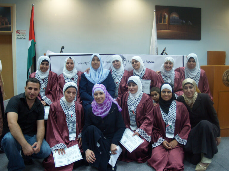 احتفلت جمعية إنعاش الأسرة بتخريج المجموعة الأولى من المتدربات ضمن مشروع تمكين العائلات الفلسطينية المحرومة اقتصادياً deep والممول من البنك الإسلامي للتنمية وبعض الصناديق العربية والمنفذ من قبل برنامج الأمم المتحدة الإنمائي undp بالمشاركة مع السلطة الوطنية الفلسطينية. وافتتحت الحفل رئيسة الجمعية السيدة فريدة العمد بالترحيب بالحضور والخريجات وأشادت بأهمية وضرورة استمرار مثل هذه المشاريع التي تعمل على رفع المستوى المعيشي للأسر الفلسطينية التي تعاني من الفقر وخاصةً في ظل التدهور الاقتصادي الذي يعيشه الشعب الفلسطيني. بدوره أكد المدير العام نبيل عنبتاوي على الدور الذي تقوم به الجمعية بكافة أقسامها لمساعدة الأسر المحتاجة وتنمية المجتمع الفلسطيني ، مشيدا أيضا بالدور الذي تقوم به الخريجات من رفع للمستوى الاقتصادي لأسرهن.