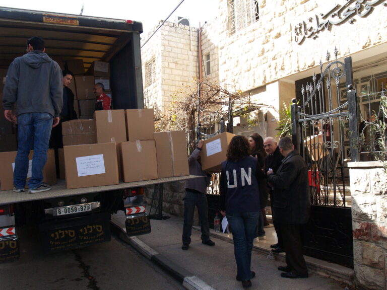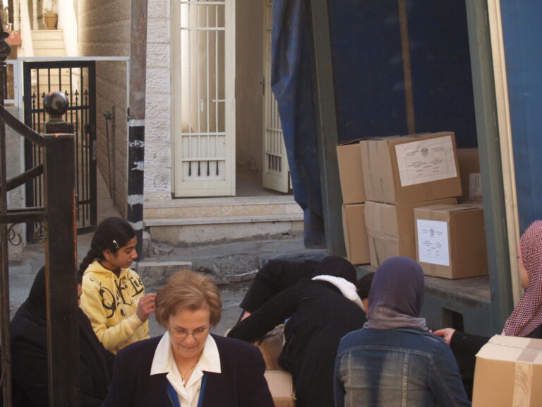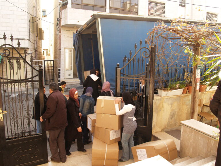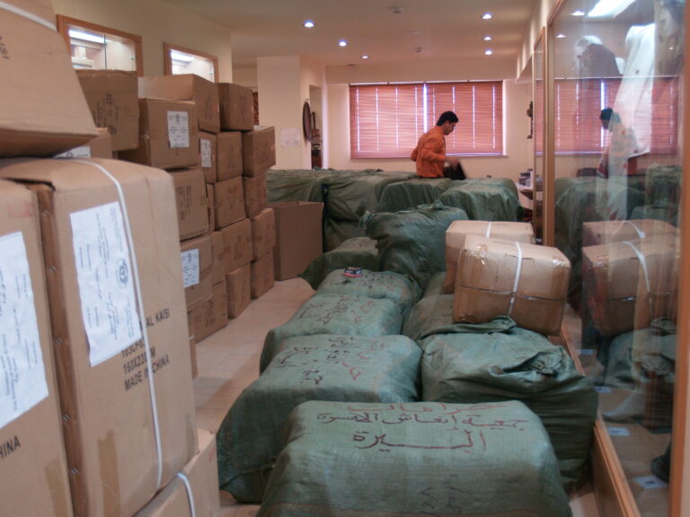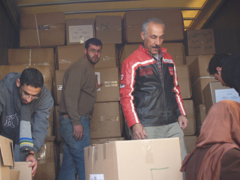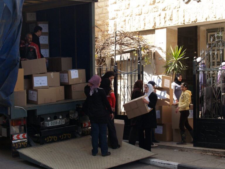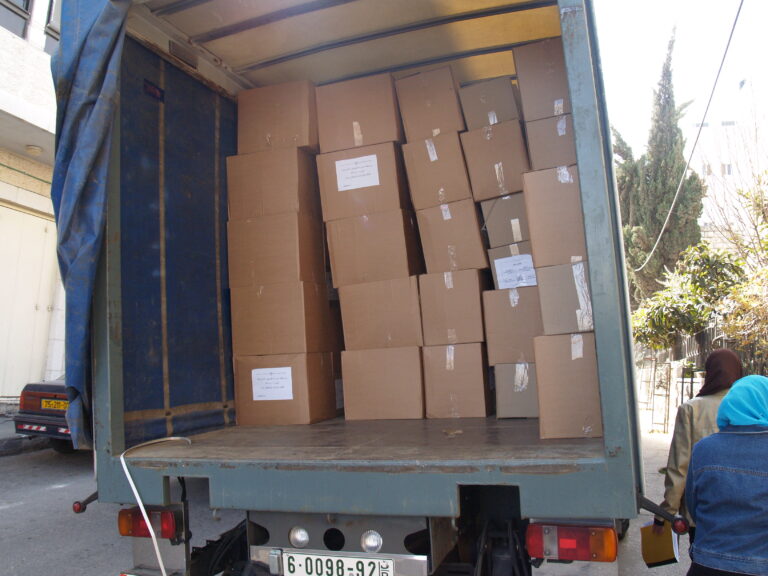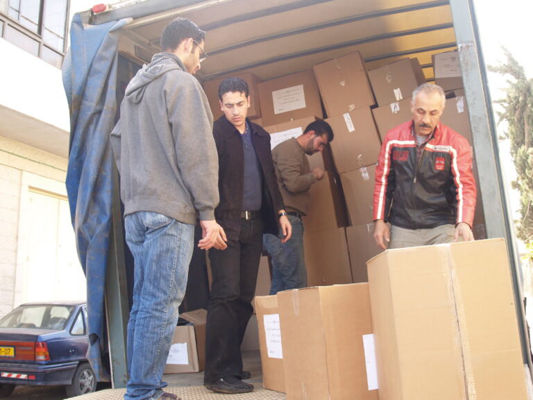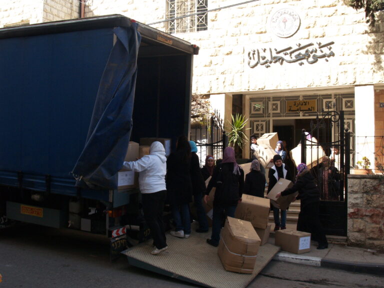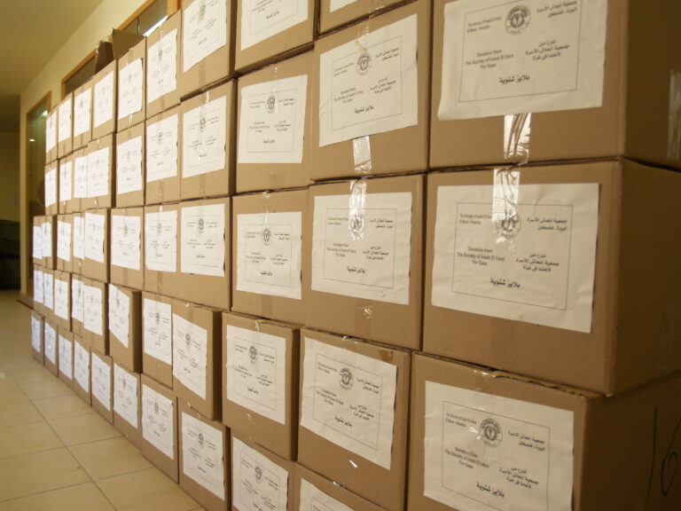 تماشياً مع ما يمر به أبناء شعبنا الفلسطيني في غزة من ظلم وقتل وجرح وتهجير ودمار واستجابة لنداء الواجب وتلبية لصرخات الثكلى والجرحى ومنظمات الإغاثة الدولية لبت جمعية إنعاش الأسرة نداءات وصرخات مكلوموا غزة واستطاعت أن تقدم ما استطاعت أن تجمعه من مساعدات عينية وما تبرعت به أعضاء الهيئة الإدارية للجمعية وما اقتطعته من رواتب موظفي الجمعية وكذلك مساهمة من ميزانية الجمعية لإعانة وإغاثة أهلنا المنكوبين في قطاع غزة وقد استطاعت الجمعية بجهودها الفردية أن تُسيّر 4 شاحنات كبيرة تحتوي 1000 فرشة وكذلك ما يزيد عن 1200 حرام صوف وأكثر من 1000 جرزة صوف و 1500 تي شيرت وأكثر من 170 مريول أطباء وكذلك العشرات من بدل وأطقم الأطباء الخاصة بالعمليات و2000 شرشف وغطاء لأسرة المستشفيات و 1000 سجادة أرضية وبعض مئات من مصابيح الإضاءة. حيث جرى تسليم هذه المعونات إلى وكالة الأمم المتحدة لإيصال هذه المساعدات لأهلنا المحاصرين والمنكوبين في قطاع غزة رافعين أكفنا إلى الله العلي القدير أن يفرج عنهم ما هم فيه وأن يرفع الأذى عنهم إنه سميع مجيب.