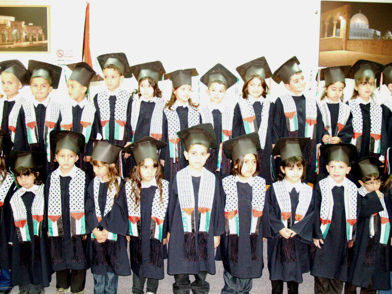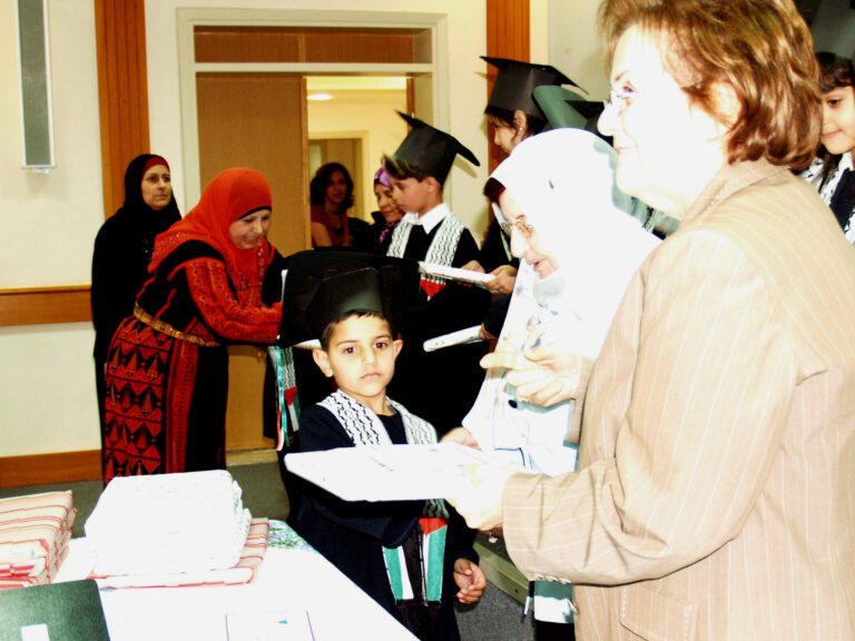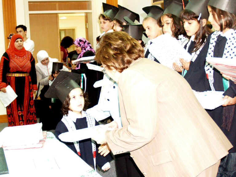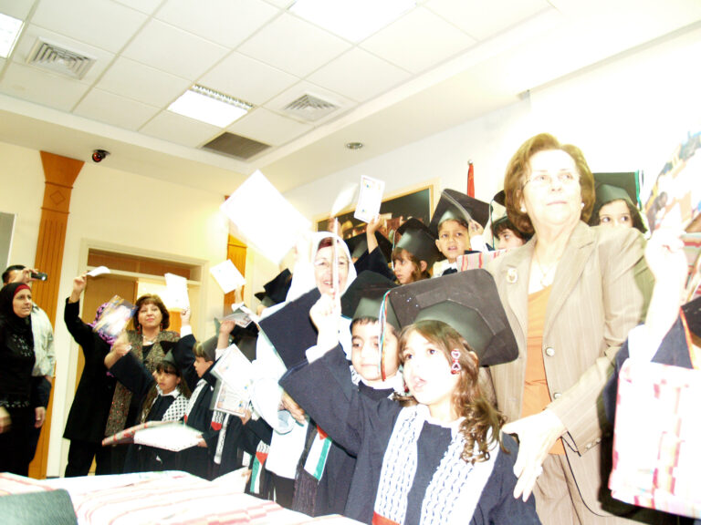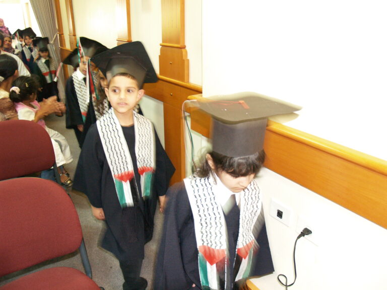 احتفلت روضة جمعية إنعاش الأسرة أمس بتخريج أطفال الروضة بحضور أعضاء الجمعية وأهالي الأطفال حيث بدأ الحفل بموكب الخريجين ثم السلام الوطني وقراءة الفاتحة على أرواح الشهداء واستمع الحضور لتلاوة عطرة من القرآن الكريم وحديث نبوي شريف بصوت الطفلين محمد الطويل وعامر غسان وقد ألقت مديرة الروضة سمر ذياب كلمة رحبت فيها بالحضور وسردت كافة برامج الطفولة التي تنفذها الروضة خلال العام باعتبارها من الروضات النموذجية في فلسطين وبعدها ترجل الأطفال بإلقاء قصيدة القدس عروس عروبتنا والقدس عاصمتنا الأبدية في أجواء زجل شعبي من تراثنا كما ألقت مجموعة أخرى من الأطفال أبياتاً من الشعر تعبر عن العلم والمعلّم واستمع الحضور أيضاً لكلمة الخريجين ألقتها الطفلة لور عويس ثم ألقت السيدة فريدة العمد كلمة عبرت فيها عن مدى اهتمام جمعية إنعاش الأسرة بالطفل والبرامج المميزة التي تشرف عليها الروضة والمهارات المكتسبة للأطفال خلال العام وصولاً لاكتساب روح الإبداع والتعاون لدى الأطفال وفي ختام الحفل تم توزيع الشهادات على الخريجين في أجواء تشيد بكتب اسمك يا بلادي.