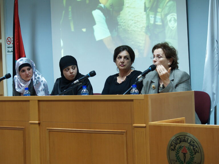 واستعرضت احصائيات دقيقة عن الاسيرات الفلسطينيات وسنوات الاعتقال والامراض وحالات الولادة داخل السجن والظروف الصحية للاسيرات والزهرات واللاتي يفتقدن للحد الادنى من المعاملة الانسانية وتطرقت للحديث عن سجن الدامون والذي اسس في عهد الانتداب البريطاني كمستودع حيث الرطوبة والظلام تحت الارض والذي خصص قبل سنة للاسيرات وقالت ان هناك حاليا 9 زهرات و 20 موقوفة و 10 اسيرات تم الحكم عليهن باكثر من 10 سنوات وعدد المتزوجات من بينهن 21 من بينهن 13 اسيرة لديهن اطفال وعدد الاطفال طفل واحد.