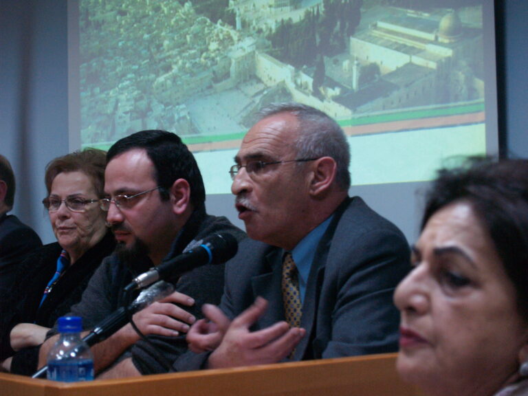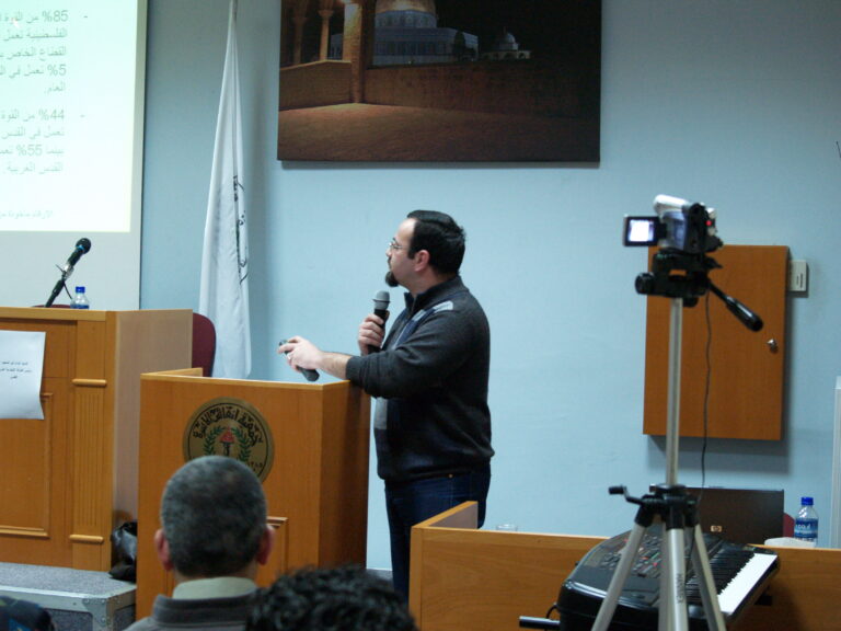 وطالب السلطة الفلسطينية بأخذ دورها وإعادة تأهيل أصحاب المهن وتشجيع السياحة الدينية وتشجيع أهل القدس في الصمود والبقاء على أرضهم. وتحدث داود حمودة منسق الحملة الشعبية لمقاومة الجدار عن الاستيطان ومراحل ابتلاع القدس والأرض وإفراغ الأرض من السكان وهدم المنازل وفصل الضفة عن القدس وإحاطة القدس ببؤر استيطانية نامية تأكل أرض القدس في سياسة مدروسة لابتلاع المقدسات وذلك مصحوباً برسومات وخرائط وإحصائيات.