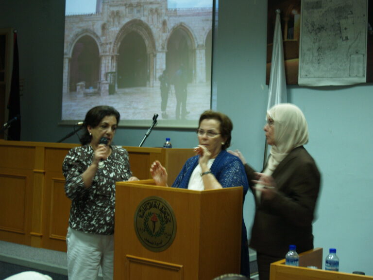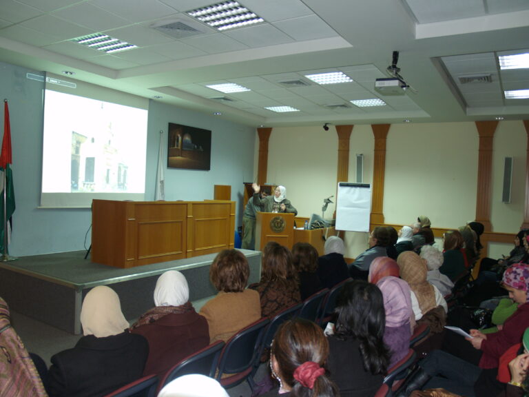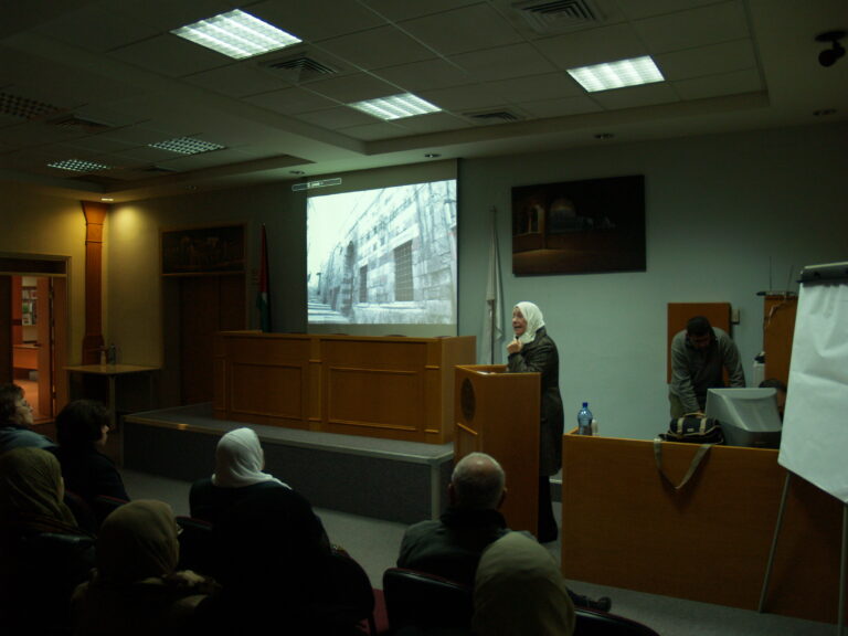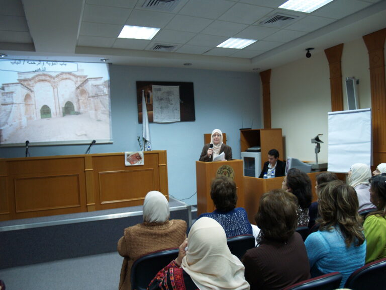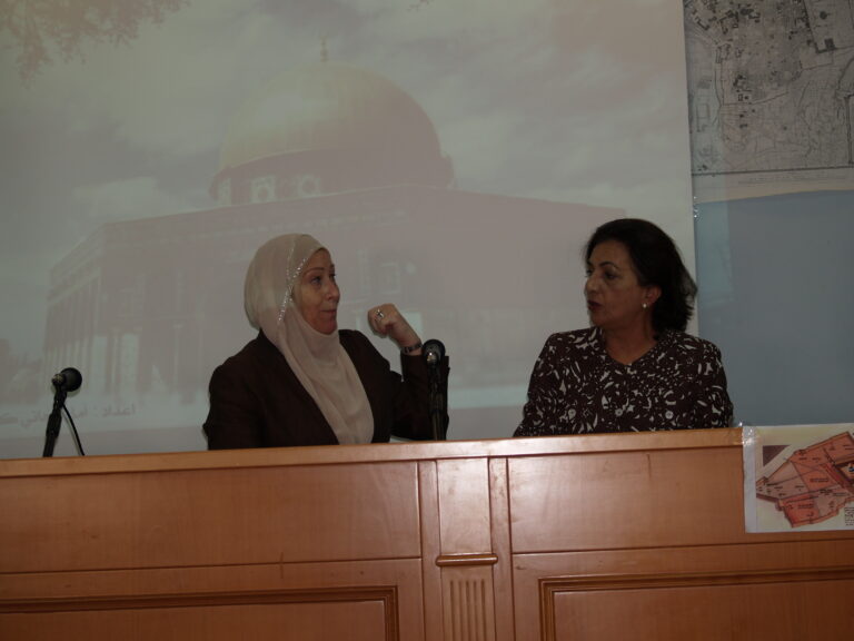 بحضور حشد غفير من طالبات وموظفي وموظفات جمعية إنعاش الأسرة عقدت الجمعية بالتعاون مع اللجنة الثقافية ندوة ثقافية بعنوان “مدينة القدس”، وذلك ضمن سلسلة اللقاءات التثقيفية حول القدس التي تعقدها الجمعية باستمرار. في البداية أدارت اللقاء الآنسة عفاف عقل (عضو الهيئة الإدارية ورئيسة اللجنة الثقافية) في الجمعية، والتي تحدثت بدورها عن القدس والتي أعلنت عنها منظمة التحرير الفلسطينية عاصمة لدولة فلسطين ضمن إعلان الاستقلال الذي تم في الجزائر. والتي أعلنت عنها إسرائيل في عام 1949 عاصمة لها ونقلت معظم مؤسساتها إلى القدس، وفي عام 1980 أقر الكنيست قانون أساس بأن القدس هي عاصمة إسرائيل والتي رسمت إسرائيل حدودها عام 1967. وصدر قرار مجلس الأمن رقم 468 الذي وجه فيه النقد واللوم لإسرائيل لمخالفتها للقانون الدولي.