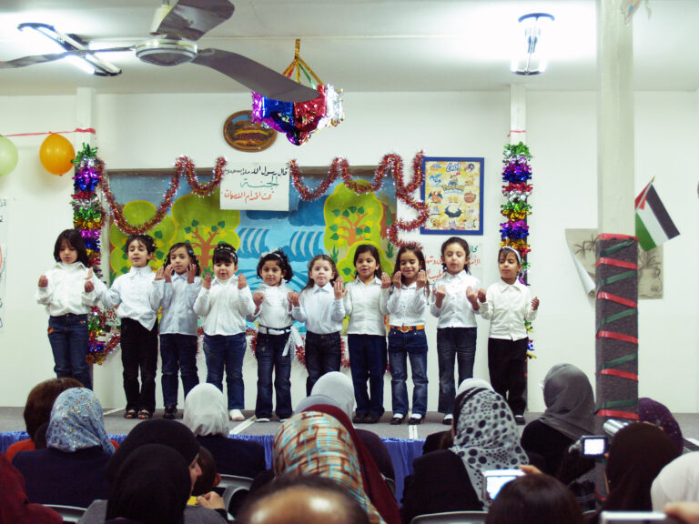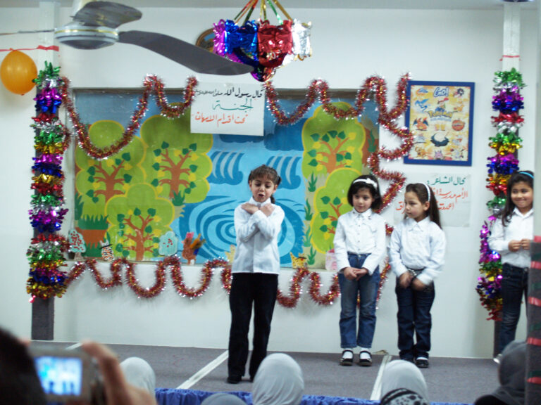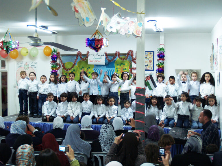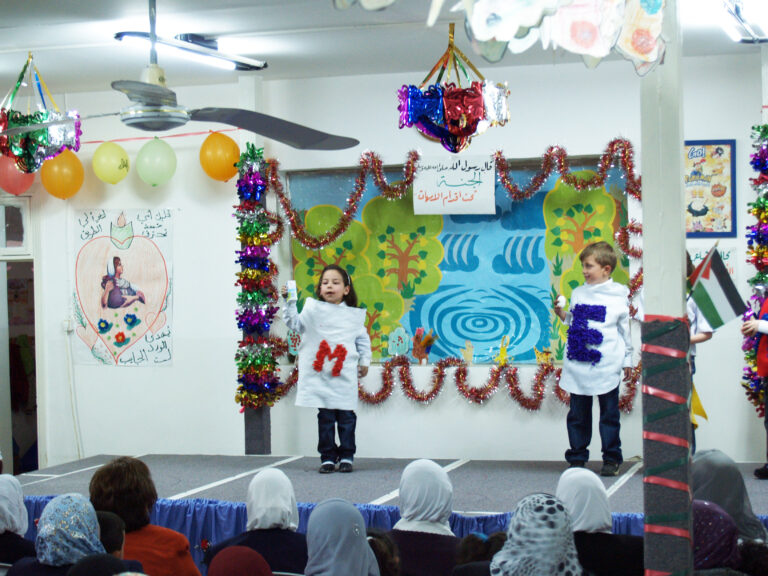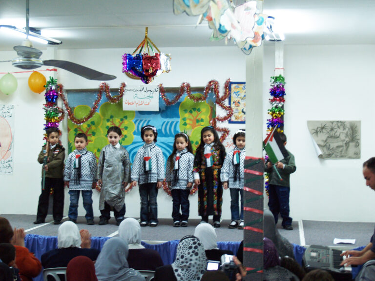 أحيا أطفال روضة جمعية إنعاش الأسرة كما هو في كل عام يوم الأم، وذلك بدعوة من اللجنة الثقافية لجمعية إنعاش الأسرة حيث افتتح الحفل بالسلام الوطني وقراءة الفاتحة وتلاوة عطرة للقرآن الكريم على أرواح الشهداء وتخلل الحفل فقرات عديدة استهلتها السيدة فريدة العمد رئيسة الجمعية بكلمتها التي رحبت فيها بالحضور من أمهات وأولياء الأمور حيث ركزت في كلمتها على الفرق بين أطفال فلسطين وما يعانونه من قسوة الاحتلال خاصة أطفال غزة المحرومون من المسكن إضافة إلى شح الموارد الأخرى التي لا تلبي الحد الأدنى للطفولة مقارنة بأطفال العالم الذين يعيشون طفولتهم ، لكن المحن صانعة الأمجاد فأطفال اليوم هم رجال المستقبل وحماة الوطن منهم من سيكون الطبيب والمهندس والمعلم والجندي … داعية الأمهات والمربين العمل على بناء جيل قوي وسليم قادر على أن يحقق أحلام آبائه واسترجاع أرضه السليبة ويرفعون العلم الفلسطيني فوق قبة الصخر وكنيسة القيامة مباركة للأم الفلسطينية قوتها وصبرها وثباتها. وقد جسد أطفال الروضة في الفقرات التي قدموها واقع ومعاناة ابن فلسطين مجسدين ذلك في أناشيدهم التي لم تخلوا من الحنين للأرض وحب الوطن. وقد نشد الأطفال للأم وللدار فغنوا “يما هدوا دارنا دار أخوي وجارنا” وغنوا للعصفور :”نيالك يا عصفور” كما توجهوا إلى الله بدعاء خاص لأهل غزة راجين من الله العلي القدير أن يزيل عنهم الكرب والهم والحزن ويرحم شهداءهم ويصبرهم على مبتلاهم. وكما هو الحال في كل مناسبة شيء من تراث فلسطين الحبيبة فكانت فقرة الدبكة التي قدمها أطفال الروضة معبرة عن الأصالة والتاريخ وأن حب الوطن مزروع في قلوبنا تتوارثه الأجيال.