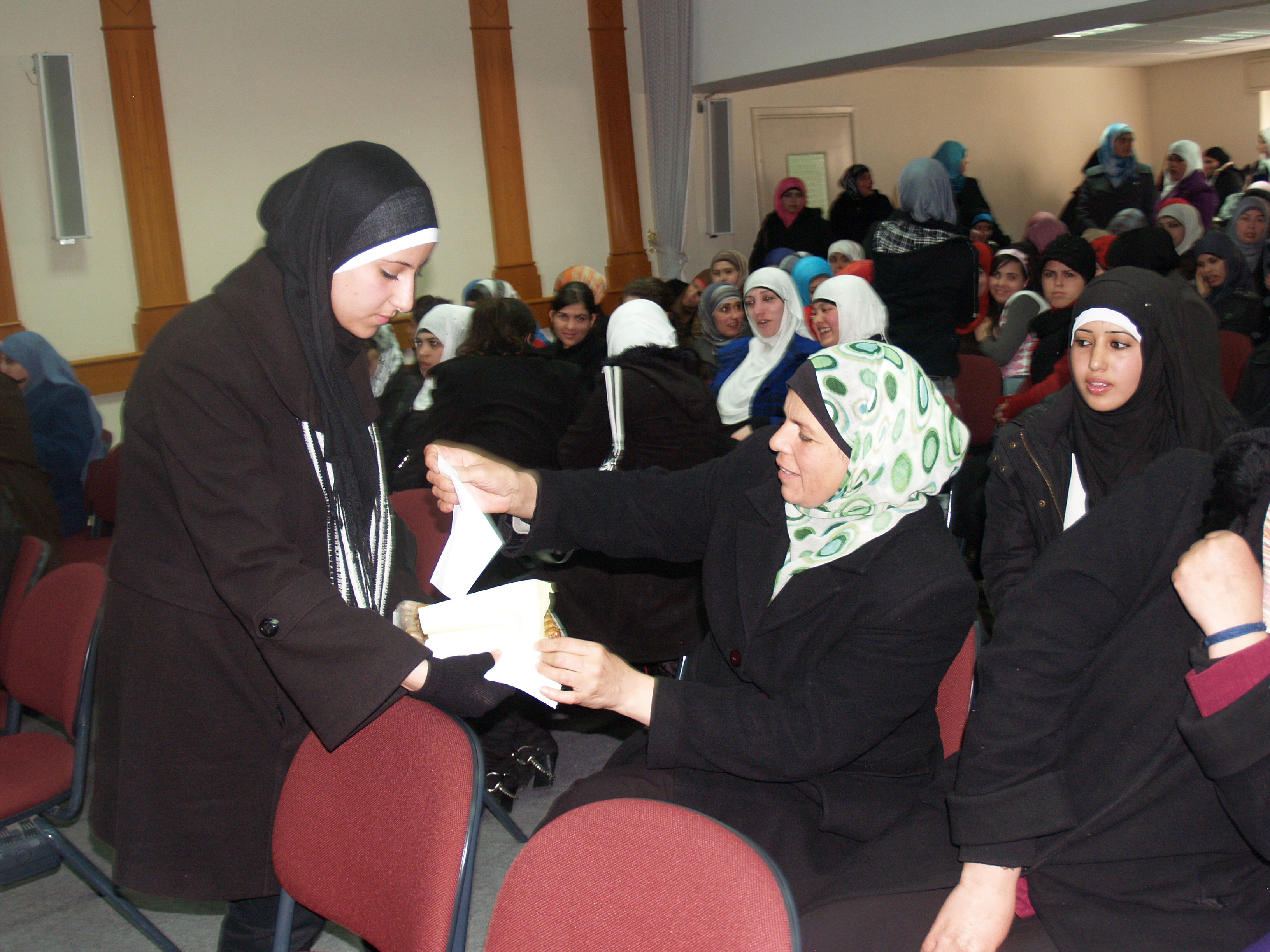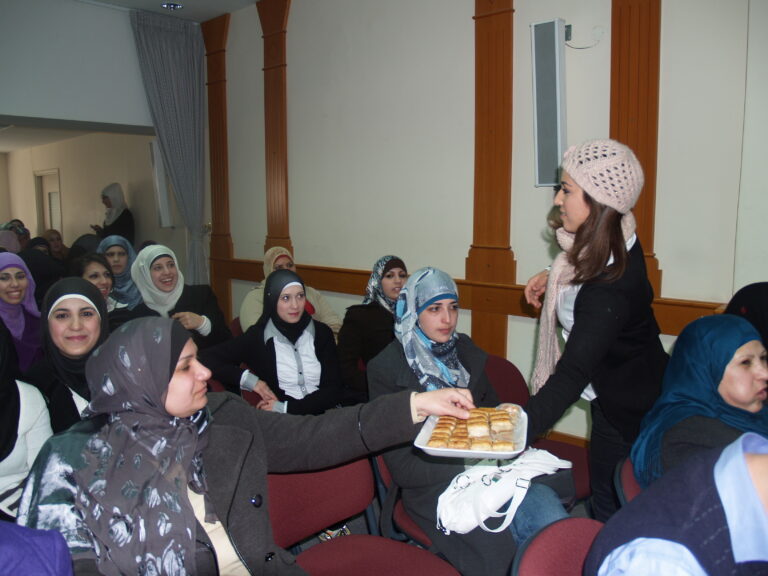 بحضور حشد غفير من الهيئة الإدارية لجمعية إنعاش الأسرة وموظفي وموظفات الجمعية وكذلك طالبات الكلية والمراكز المهنية أحيت الجمعية هذا اليوم بتنظيم من اللجنة الثقافية والمركز الثقافي التابع للجمعية في قاعة عمر الفاروق التابعة للجمعية حيث افتتح الاحتفال بكلمة ترحيبية بالحضور واستهل الحفل بتلاوة عطرة لآيات من الذكر الحكيم تلتها الطالبة أنوار مفلح – تربية الطفل…