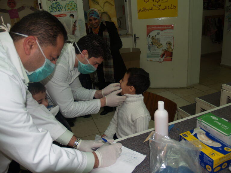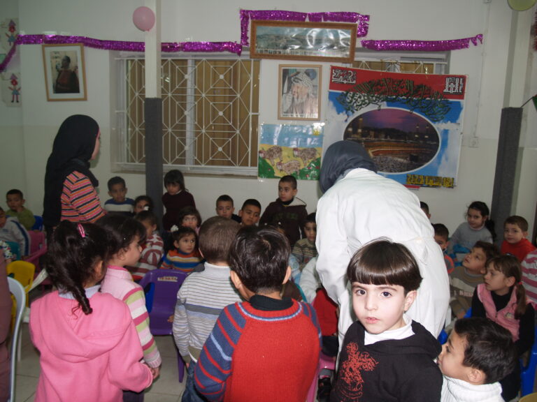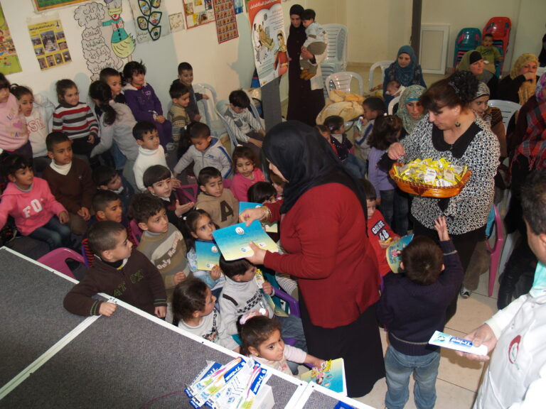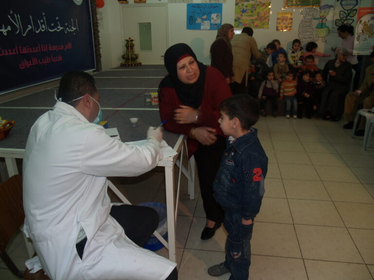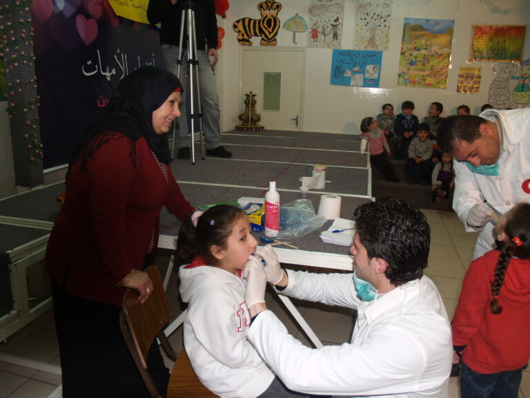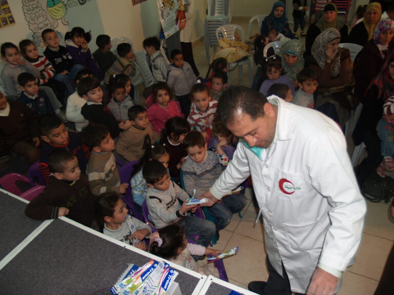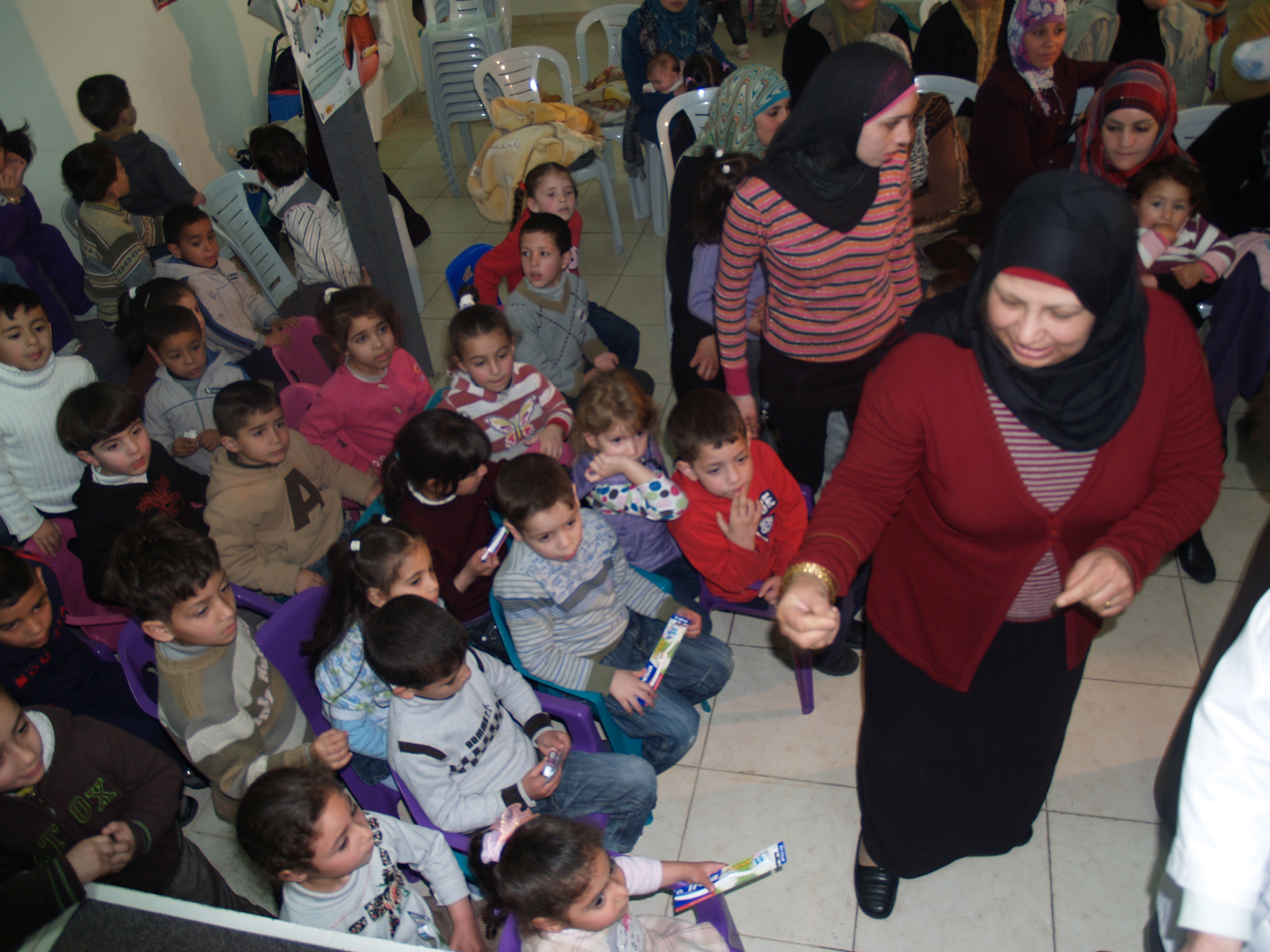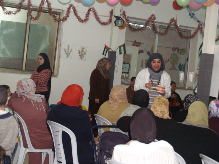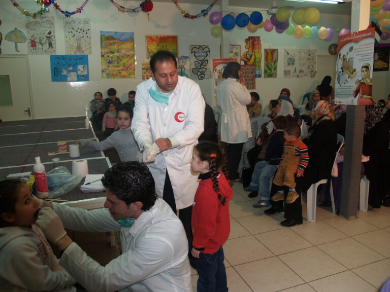 ضمن فعاليات أسبوع صحة الفم والأسنان الذي تنظمه وزارة الصحة الفلسطينية تم عمل نشاط توعوي لأطفال روضة وحضانة جمعية إنعاش الأسرة بحضور أهالي الأطفال حيث تم عمل فحص لأسنان كافة الأطفال من خلال د. ميساء جرار و د. فادي العاصي و د. مهند البشير. كما تم تقديم شرح مفصل عن كيفية العناية بالفم والأسنان وكذلك تم تعريف الحاضرين بالمأكولات التي تسبب سوء وتسوس الأسنان. وكذلك تم معالجة أسنان الأطفال بجرعة وقائية من مادة الفلورايد لتقي الأسنان التسوس. وفي ختام الندوة تم تقديم هدايا رمزية للأطفال.