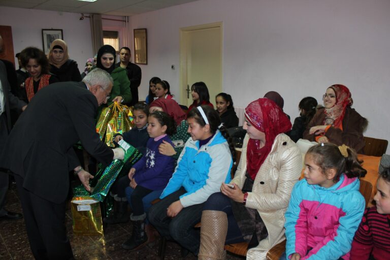 بمناسبة اليوم العالمي للتطوع الذي يصادف الخامس من كانون أول من كل عام، نظمت جمعية إنعاش الأسرة بالشراكة مع جامعة بيرزيت ضمن مشروع صديق اليتيم حفلاً تكريمياً لتكريم عدد من طلاب وطالبات بيرزيت الذين تطوعوا من وقتهم وجهدهم لتقديم الدعم النفسي والإجتماعي للأطفال الأيتام الذين تحتضنهم الجمعية. فشاركوهم همومهم واحلامهم وبادلوهم الخبرات وحثوهم على النجاح في دراستهم كخطوة أساسية ليصبحوا أعضاء فاعلين في مجتمعاتهم. ولتعزيز مثل هذا العمل التطوعي الذي هو جزء من تراثنا الفلسطيني ولبنة أساسية في تطور المجتمع الفلسطيني، استضافت الجمعية وفداً يرأسه دولة رئيس الوزراء د. سلام فياض ود. خليل الهندي رئيس جامعة بيرزيت ود. غسان الخطيب مدير مركز الإعلام الفلسطيني والأستاذ محمد الأحمد عميد شؤون الطلبة والأستاذة غادة العمري ممثلة جامعة بيرزيت للعمل التطوعي. واستهل الحفل بكلمة ترحيبية ألقتها رئيسة الجمعية السيدة فريدة العمد أشادت من خلالها بتاريخ الجمعية النضالي والإنساني والتطوعي ودورها الريادي في الحفاظ على التراث الفلسطيني. ثم انتقل الوفد إلى منزل الفتيات اليتيمات ليلقي كلمة شكر وتشجيع للمتطوع الفلسطيني. كما ركز في كلمته على ريادية الجمعية في العمل التطوعي وبث هذه الروح في الشباب الفلسطيني الذي هو أمل الدولة الفلسطينية. وقد أكد أن المهمة الرئيسية للعمل التطوعي هو تعزيز الصمود الوطني وتجاوز العقبات والوقوف في وجه الممارسات الإسرائيلية. ومن جهته، أكد د. الهندي على ضرورة زرع روح العمل التطوعي عند اطفالنا وشبابنا وضرورة إنكار الذات كجزء من البذل والعطاء لخدمة مجتمعنا ووطننا. واختتم الحفل بفقرة دبكة شعبية وتوزيع المتطوعات الهدايا للفتيات اليتيمات.