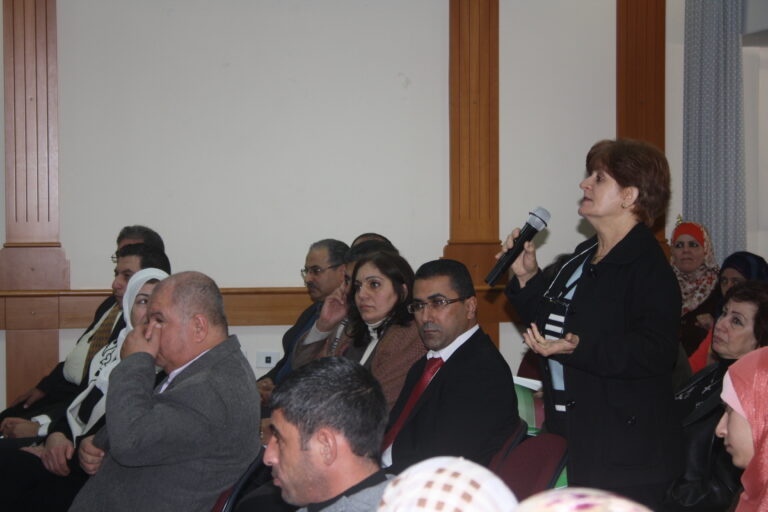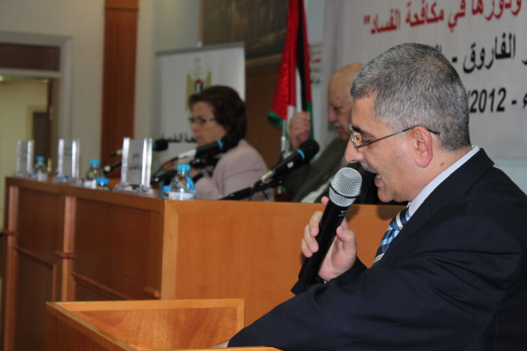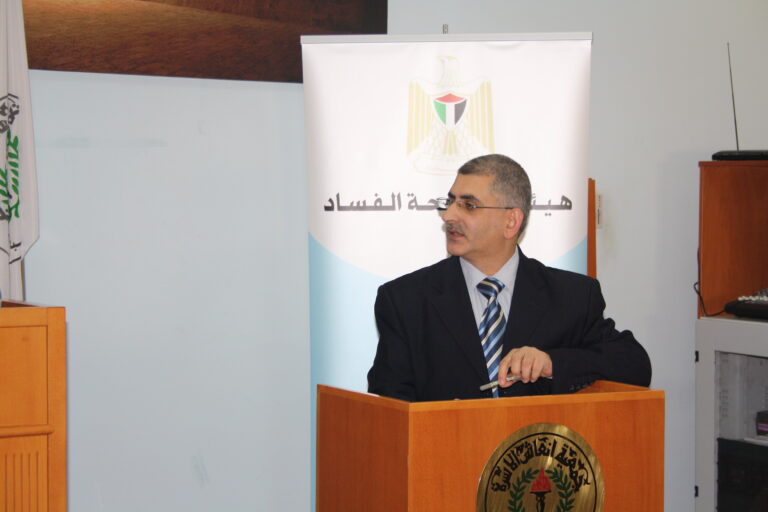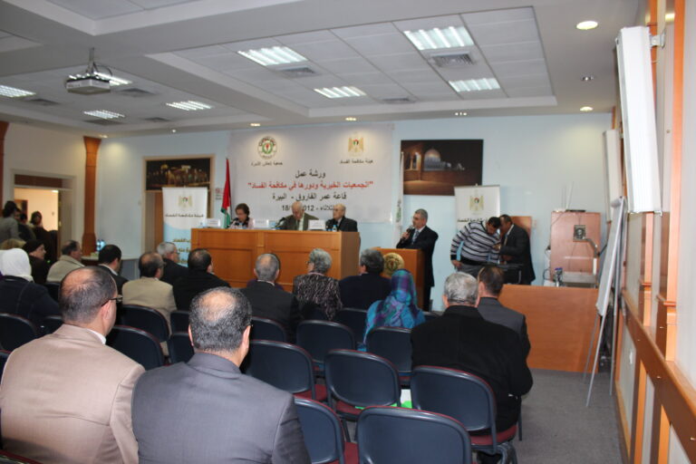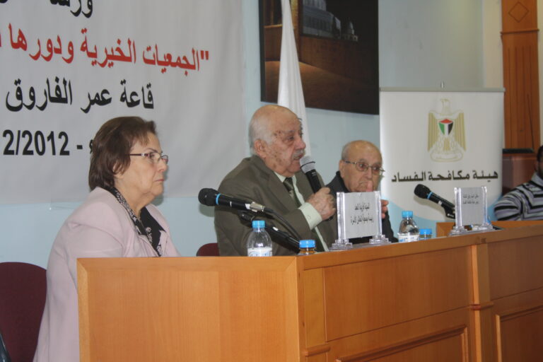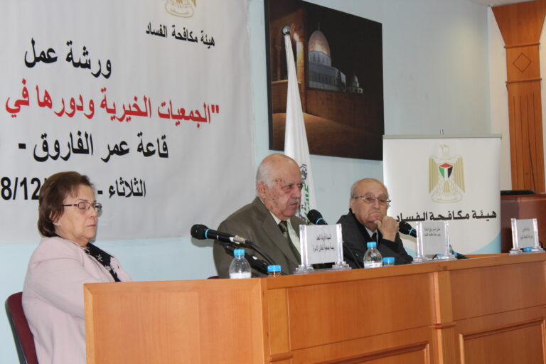 من جهتها رحبت العمد بالحضور والمشاركين وتحدثت عن الجمعيات الخيرية التي أسست على مبادئ النزاهة والشفافية منذ عشرات السنين ولا زالت، حيث كان هدف وجودها الأساس الإنسان الفلسطيني مع ضعف الإمكانيات حينها وقلة الموارد البشرية والمالية وغيرها من المقومات، إلا أن عملها نضج وأثمر نتيجة سمو الفكرة التي أنشئت من أجلها الجمعيات في ظل التضحيات الجسام والتهديدات الاسرائيلية وعدم وجود سلطة فلسطينية آن ذاك تنظم عملها، إلا أنها استطاعت أن تقوم بدور ريادي في المجتمع الفلسطيني. ثم تحدث رفيق النتشة عن هيئة مكافحة الفساد وتأسيسها وكوادرها والنيابة التابعة لها وعن قانون المكافحة الفلسطيني المعمول به في فلسطين ومن ينطبق عليه قانون مكافحة الفساد من أفراد ووزارات وموظفين ومؤسسات .