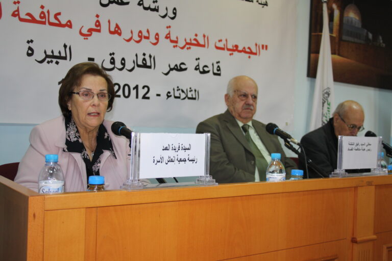 وتحدثت في اللقاء، فريدة العمد رئيسة جمعية إنعاش الأسرة و رفيق النتشة رئيس هيئة مكافحة الفساد والدكتور عبد الله صبري رئيس اتحاد الجمعيات الخيرية- القدس. ورحب خليل فرحان القائم بأعمال المدير العام لجمعية إنعاش الأسرة بالحضور ، وقدّم عرضاً عن واقع الجمعيات الخيرية ودورها الريادي والخدماتي في فلسطين منذ عشرات السنين خاصة قبل مجيء السلطة الفلسطينية حيث لعبت دوراً هاماً وكبيراً في مساندة المواطن الفلسطيني وتعزيز صموده على أرضه.