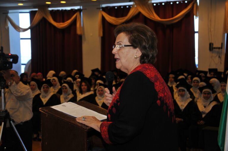 وأشاد معلا بالجمعية، ودورها في خدمة المنظومة التعليمية في الأراضي الفلسطينية، مبينا أنها من المؤسسات الناشطة والفاعلة على المستوى الوطني. ونوه إلى تميز فعاليات الجمعية، موضحا أنها تلعب دورا مجتمعيا لافتا على مختلف الصعد. واعتبر أن تخريج كوكبة جديدة من الخريجات، دليل على قدرة الجمعية على الإنجاز والعطاء، متمنيا للخريجات مزيدا من التقدم خلال الفترة المقبلة. وأثنت نوح على الهيئتين الإدارية والتدريسية للجمعية، منوهة إلى مساهمة الكلية في تخريج كوادر وقيادات نسوية تخدم كافة التخصصات اللازمة لسوق العمل. وباركت للخريجات بلوغ هذه المرحلة من حياتهن، داعية إياهن إلى مواصلة المثابرة، والإقبال على التعلم.