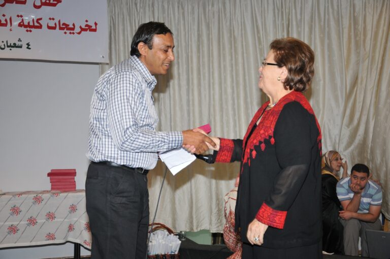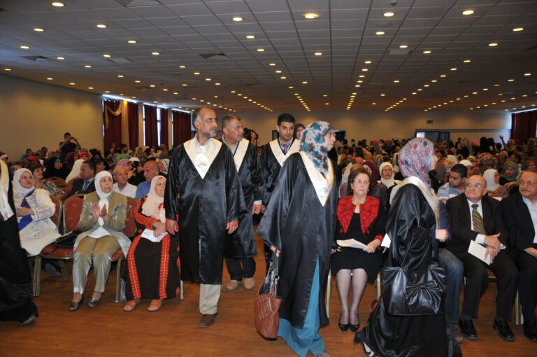 وأشاد المواطن محمد أبو حطب في كلمة أولياء الأمور، بما تقوم به الجمعية على الصعيدين التعليمي والمجتمعي، مشيرا إلى أنها إحدى المؤسسات التعليمية المميزة. وأوضح أن فرحة الأهالي بتخرج بناتهم لا توصف، منوها إلى تقديرهم لجهود الهيئتين الإدارية والتدريسية في الجمعية. وعبرت الخريجة رحمة البرغوثي، عن سعادتها وزميلاتها بالتخرج، مشيدة بالمقابل بالكادر التدريسي، والإداري للجمعية والكلية. وأثنت على مؤسسي الجمعية وتحديدا رئيستها السابقة الراحلة سميحة خليل، مبينة أن الخريجات على أتم الاستعداد للمساهمة في خدمة المجتمع والنهوض به. وفي ختام الحفل، الذي تخلله عدة فقرات فنية، تم توزيع الشهادات على الخريجات، وهن:
