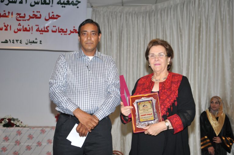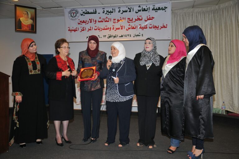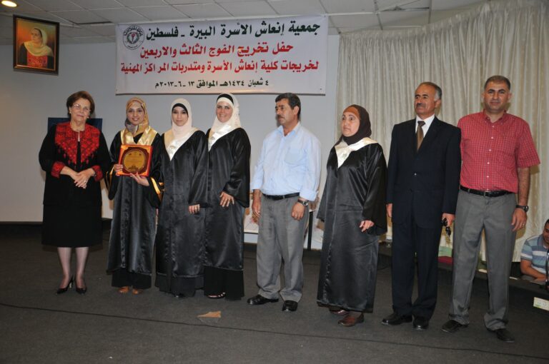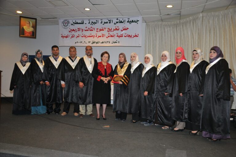 احتفلت جمعية إنعاش الأسرة بتخريج الفوج ال 43 من خريجات الكلية الخاصة بها، ومتدربات مراكزها المهنية، بمشاركة عضو بلدية البيرة رئيس جمعية لفتا ضياء معلا، ورئيسة الجمعية فريدة العمد، وعميدة الكلية مارلين نوح، إضافة إلى حشد من الأهالي والمهتمين. وركزت العمد، على أهمية العلم في حياة الشعب الفلسطيني، خاصة خلال السنوات التي تلت النكبة، وذلك كرد على كافة محاولات الاحتلال لطمس هويته الوطنية، مبينة أن التعليم شكل مصدرا لتعزيز قدرة الشعب على الصمود، وبلورة هذه الهوية واستعادتها. وذكرت أن الإنسان هو ثروة فلسطين، وأن التعليم ركن أساسي في بناء هذا الإنسان، ورفعة الوطن وتقدمه. ونوهت إلى عناية الجمعية ممثلة بالكلية، وتحمل اسمها ذاته، بتكريس التميز، وتوفير تخصصات تحتاج إليها سوق العمل. وقدمت نبذة عن المراكز التعليمية والمهنية التابعة للجمعية، والخدمات والمبادرات التي تنفذها على الصعيد العام، مبينة أن الجمعية نجحت منذ نشأتها في إنجاز 24 مشروعا موجودا على أرض الواقع. كما تحدثت عن المشاريع الإنتاجية التي تنفذها الجمعية، منوهة إلى دورها في تغطية %70 من احتياجات الجمعية، الأمر الذي ساهم في تعزيز قدرتها المالية، بالاعتماد على الذات.