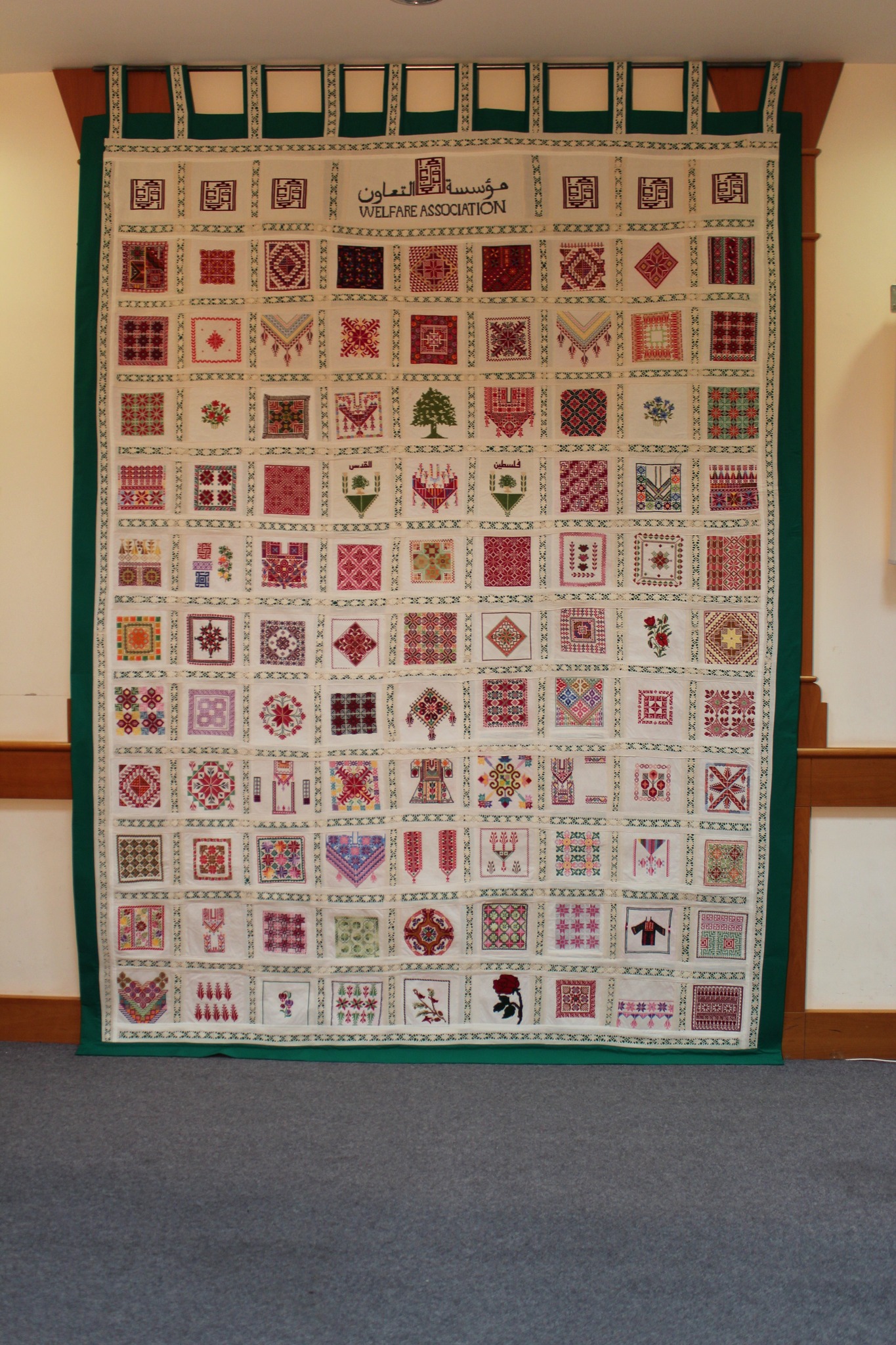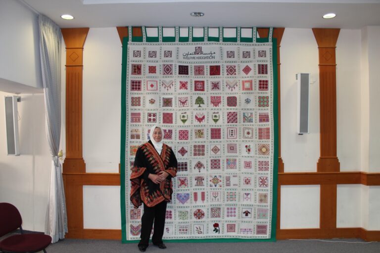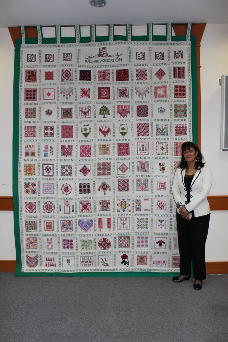 في إطار تعزيز الهوية الثقافية الفلسطينية، صممت ونفذت جمعية إنعاش الأسرة معلقة فنية مميزة لصالح مؤسسة التعاون، تجسد التراث الفلسطيني بروح معاصرة. وتُظهر المعلقة، التي تم الكشف عنها مؤخراً، تصميماً غنياً بالتفاصيل والزخارف الهندسية والنباتية المستوحاة من البيئة الفلسطينية، وتحمل في أعلاها شعار مؤسسة التعاون باللغتين العربية والإنجليزية. وقد تم تنفيذ العمل بدقة عالية، ما يعكس الحرفية والمهارة التي تتمتع بها الجمعية في مجال الفنون التراثية.
