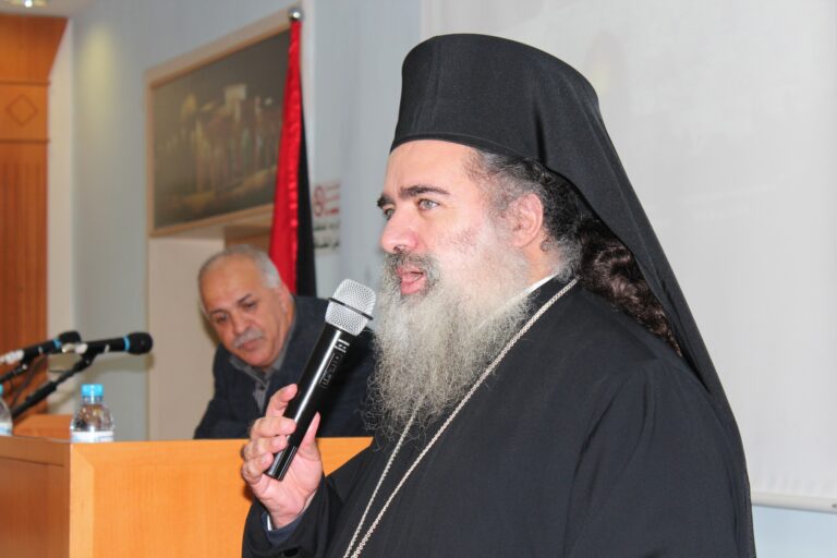 وفي كلمته عن التسامح الإسلامي المسيحي في القدس وخصوصاً في ظل انتشار وسيطرة مشاعر التعصب في عالمنا العربي أكد سيادة المطران عطا الله حنا على وحدة المصير لأبناء فلسطين عامة وأهل القدس خاصة، مشيراً إلى أن التحديات والصعوبات التي تواجه القدس والمقدسيين ،يجب أن لا تكون موضع إحباط ويأس ،بل حافز للوحدة الوطنية والعمل البناء لدرء المخاطر التي تحدق بهم وبمدينتهم المقدسة،واستطرد قائلاً ان القدس هي قضية العرب الاولى، مستفسراً عن ماذا قدم العرب للقدس وأهلها،كما طالب برفع الصوت العربي لنصرة المقدسيين والمقدسات المسيحية والإسلامية من خلال خطوات وإجراءات عملية ملموسةعلى أرض الواقع.