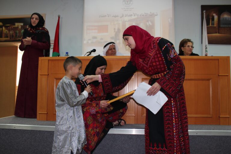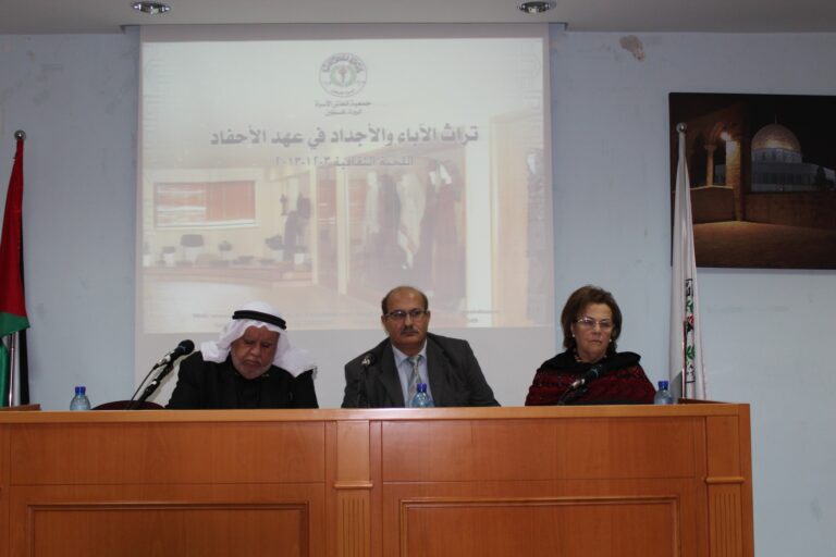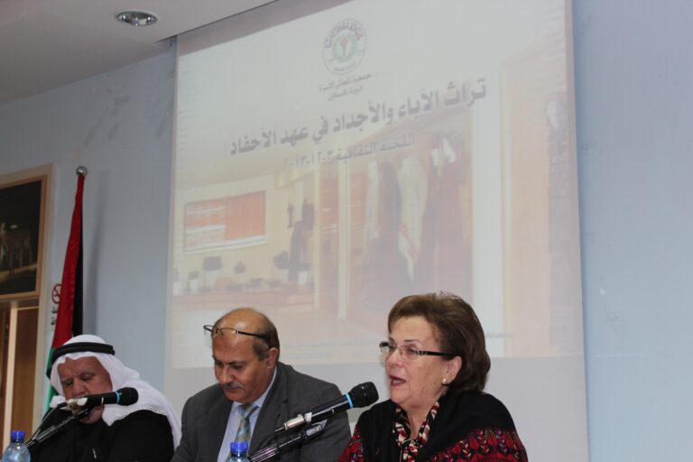 من عبق تاريخ هذا الوطن المفعم بالأمجاد، وفي إطار الفعاليات الثقافية الدورية التي تنظمها جمعية إنعاش الأسرة، احتفلت الجمعية اليوم في مقرها بمدينة البيرة بيوم التراث الفلسطيني ،الذي شارك فيه كل من الدكتور يوسف ذياب عواد أستاذ الصحة النفسية ومدير فرع جامعة القدس المفتوحة بمدينة نابلس والمؤرخ والباحث عضواتحاد الكتّاب الفلسطينين وعضواتحاد المؤرخين العرب الأستاذ عباس نمر، وبحضور رئيسة الجمعية السيدة فريدة العارف العمد وأعضاء هيئاتها الإدارية والإستشارية والعامة وحشد كبير من موظفيها وطالباتها.