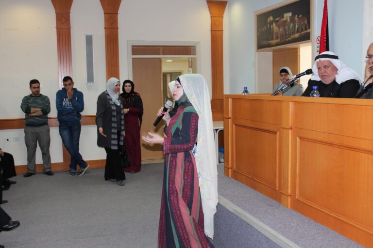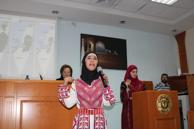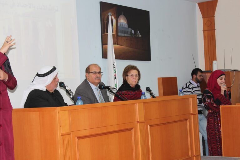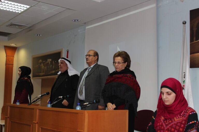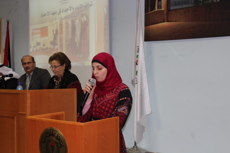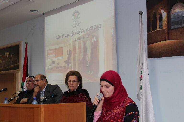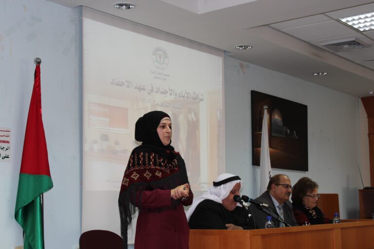 استُهل الحفل بالسلام الوطني الفلسطيني ثم تلاوةِ آياتٍ عطرة من الذكر الحكيم وقراءة الفاتحة على أرواح شهدائنا الأبرار. وأكدت رئيسة الجمعية وبعد ترحيبها بالضيوف الكرام ،أن جمعية إنعاش الأسرة ومنذ انطلاقتها أولت التراث الفلسطيني اهتماما بالغاً من أجل حفظه وحمايته من الإنتحال والطمس والسرقة كونه أحد أركان الثالوث المشكل لصلب رسالتها الوطنية والإنسانية بعد اهتمامها بالمرأة والطفل، وقد جسّدت الجمعية هذا الاهتمام من خلال تأسيس مركز دراسات التراث والمجتمع الفلسطيني الذي يعد من أهم الروافد الثقافية والتراثية في الوطن، كما أنشات متحفا تراثيا تصُب محتوياته في عمق الثقافة والتراث الشعبي الفلسطيني العريق، وأيضا من خلال المؤتمرات والفعاليات التي تقيمها والتي تؤكد حرص الجمعية على المحافظة على الهوية والتراث الذي يعد من أحد الجوانب الرئيسية في صراعنا مع الإحتلال على الوجود والأرض والهوية والتراث، خاصة بعد أن تعرض وفي السنوات الأخيرة إلى محاولات التحريف والسرقة والطمس من قبل الاحتلال الصهيوني .