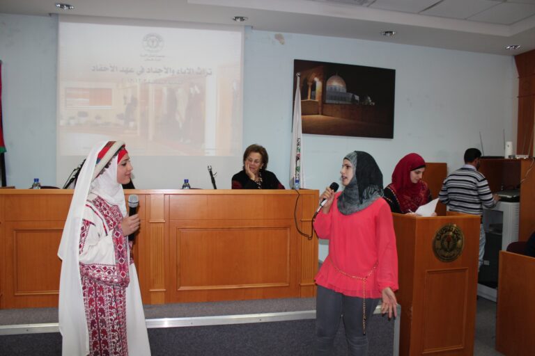 وقد تضمّنت الإحتفالية بيوم التراث ،فعاليات وعروض تراثية في لوحات فنية بديعة طُرّزت برونق وأصالة تراثنا الشعبي الفلسطيني ،قدمتها طالبات كلية جمعية إنعاش الإسرة وكافة الاقسام الثقافية الاخرى ،وكان أهمها تمثيل العرس الفلسطيني،، فقرة زجل،،وعرض لأكلات شعبية ومطرزات فلسطينية من إنتاج الجمعية،كما تم تنظيم عرض لأجمل الأزياء الشعبية الفلسطينية من كافة أنحاء الوطن،عززّت انتماء الجمعية للتراث الفلسطيني وأحيت بهاءَه ورونقه.