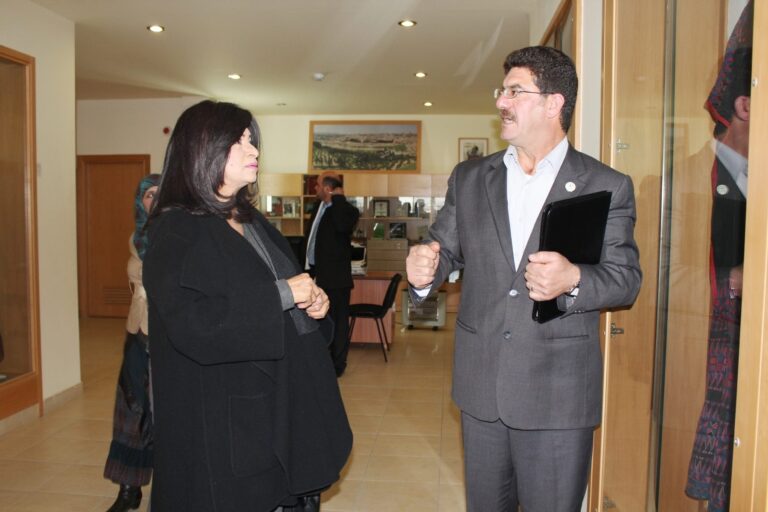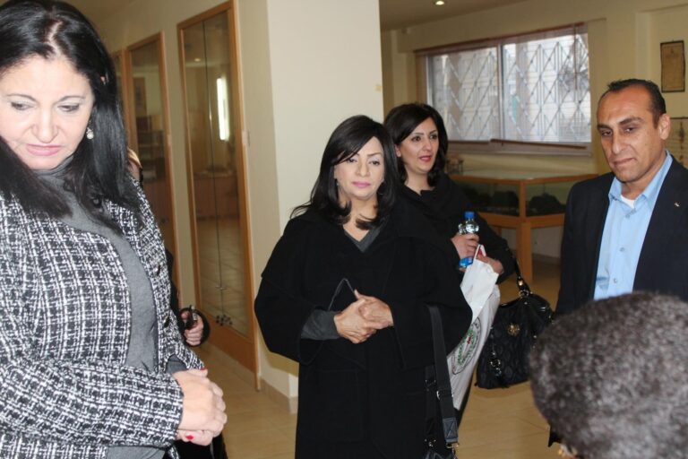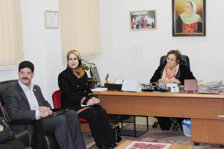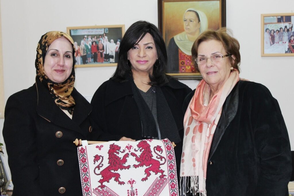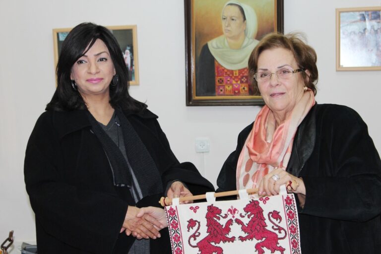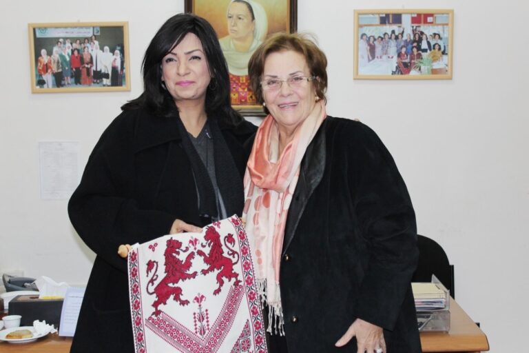 استقبلت رئيسة جمعية إنعاش الأسرة فريدة العارف العمد في مكتبها بمدينة البيرة اليوم،عضو مجلس النواب البحريني ورئيسة لجنة المرأة والطفل ابتسام هجرس،وحرم السفير الفلسطيني لدى دولة البحرين رحاب العفيفي بحضور أعضاء من الهيئتين الإدارية والإستشارية وعدد من كبار موظفي الجمعية،وذلك بالتنسيق مع دائرة العلاقات العامة في المجلس التشريعي الفلسطيني. ورحبت رئيسة الجمعية بالوفد الضيف وقدمت لهم عرضاً موجزاً عن نشأة الجمعية ومراحل تطورها وأهدافها وإنجازاتها،وأشارت إلى أن قضية المرأة الفلسطينية استأثرت باهتمام القائمات على جمعية إنعاش الأسرة منذ تأسيسها،وأن هذا الإهتمام لم يكن مجرد نهج في العمل النسائي فقط، بل كان من أجل القضية الفلسطينية ولمواصلة مسيرة النضال الوطني بكافة جوانبه الثقافية والإجتماعية والسياسية وصولاً للتحرر والبناء والتنمية.