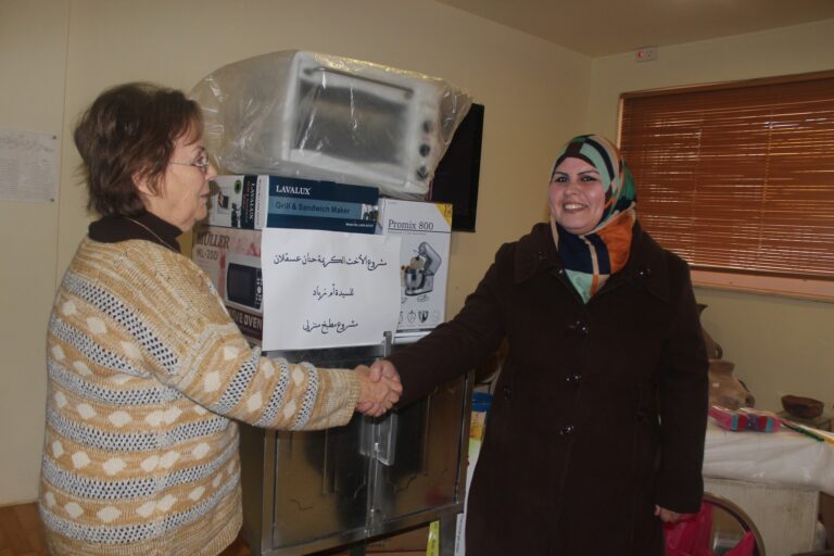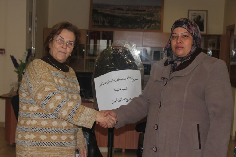 من ناحيتها أكدت رئيسة الجمعية السيدة فريدة العمد أن أبرز خطوة في تمكين المرأة ودعم صمودها هي تعزيز اعتمادها على نفسها، وجعلها عنصرا منتجا لذاتها ولأسرتها، النهج الذي تعتمده جمعية إنعاش الأسرة منذ تأسيسها. وشكرت العمد السيدة عسقلان على المبادرة الكريمة التي ساهمت في تحسين ظروف الانتاج للسيدتين مهيلة وسرية، وأملت أن تحذو السيدات الفلسطينينات المقتدرات حذو السيدة عسقلان لدعم صمود النساء وتعزيز انتاجيتهن.