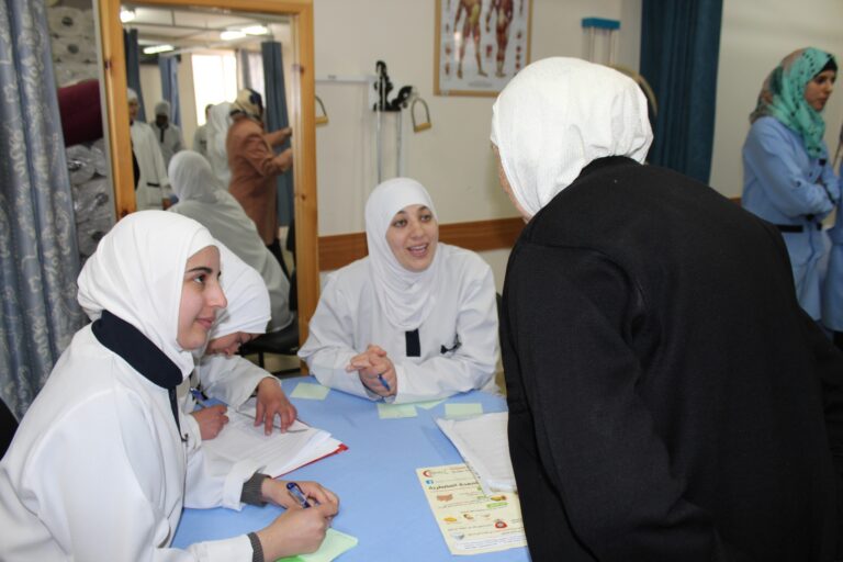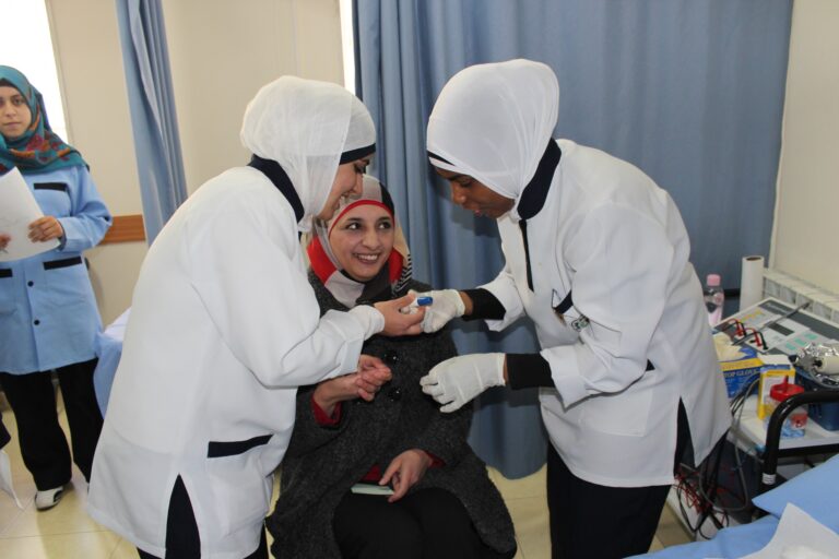 نظمت كلية إنعاش الأسرة يوما طبيا مجانيا لإجراء فحوصات طبية متنوعة لموظفات وموظفي الجمعية وأعضاء الهيئة الإدارية في مركز الاسرة للعلاج الطبيعي، وقد نظمت الكلية هذا اليوم بالتعاون مع وكالة الغوث “الاونروا”، مركز تيتي للبصريات، مركز القدم الفلسطيني (قسم الارشاد التغذوي)، طالبات كلية إنعاش الاسرة سنة ثانية مع كادر الكلية. وقالت عميد الكلية مارلين نوح أنه تم إجراء فحوصات السكري، الضغط، الوزن والطول، فحص القدم، فحص العيون اضافة الى الإرشاد التغذوي، وأن الكلية نظمت هذا اليوم مع شركائها بمناسبة يوم الصحة العالمي لزيادة الوعي بأهمية الحفاظ على الجسم السليم وتناول الغذاء الصحي كذلك.