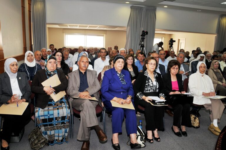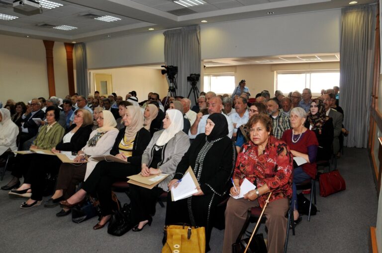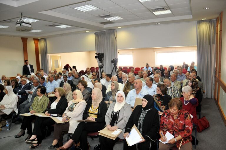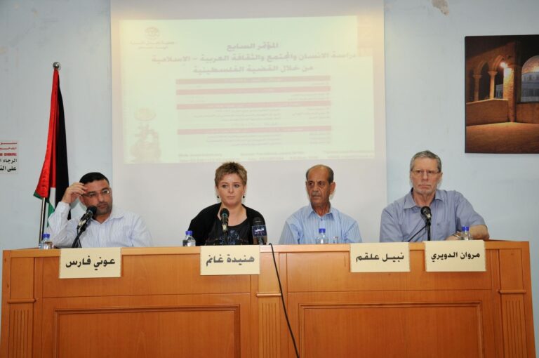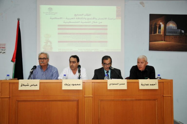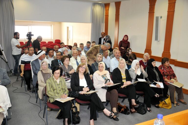 وفي كلمته استعرض رئيس مركز دراسات التراث والمجتمع الفلسطيني د. شريف كناعنة مخطط المؤتمر وأهميته اضافة الى طرح تساؤل اساسي وهو لماذا فشل العرب بمصادرهم الهائلة هذا الفشل الذريع في تعاملهم مع القضية الفلسطينية؟ وتضمنت الجلسة الأولى التي ادارتها السيدة هنيدة غانم ثلاث ورقات بحثية، حيث قدم الاستاذ نبيل علقم ورقة التثقيف الديني تأملات في المكونات والصفات والتطلعات، تلاه الاستاذ عوني فارس بورقة الدين بين التهميش والتدمير والرشد الاجتماعي في المجتمعات العربية ثم الاستاذ مروان الدويري بورقة انماط التفكير والمواجهة المعيقة لنهضة عربية. أما في الجلسة الثانية والتي أدارها الأستاذ حسن السلوادي ابتدأت مع ورقة الاستاذ عباس شبلاق حول “الفلسطينيون بين المنظور القومي وقطرية النظام الرسمي”، وورقة الباحث محمود يزبك حول “انعكاسات الصهيونية في الصحافة العربية والفلسطينية” اضافة الى ورقة الباحث أحمد عداربة “اللاجئون الفلسطينيون والعالم العربي”.