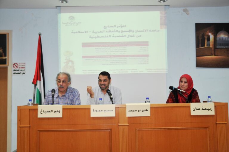 نظم مركز دراسات التراث والمجتمع الفلسطيني في جمعية انعاش الأسرة مؤتمره السابع تحت عنوان ” دراسة الانسان والمجتمع والثقافة العربية الاسلامية من خلال القضية الفلسطينية”والذي امتد على مدى يومين دراسيين تنوعت فيهما الجلسات والمداخلات الثقافية الفكرية ، حيث توزعت المداخلات على يومي السبت 24/5 و الأحد 25/5 بواقع جلستين لكل يوم. وافتتحت رئيسة الجمعية السيدة فريدة العارف العمد اليوم الأول بكلمة ترحيبية بضيوف المؤتمر وعلى رأسهم معالي وزير الثقافة د. أنور أبو عيشة والعديد من الشخصيات الأكاديمية والثقافية والمجتمعية إضافة الى الطلاب والباحثين، وأكدت ان الجمعية تحتضن هذا المؤتمر لما له من اهمية معرفية وفكرية، ولايمان الجمعية بأهمية الثوابت الفلسطينية والتعمق في القضية الفلسطينية حفظا ونقلا لها بين الاجيال كجزء لا يتجزأ من الهوية الوطنية الفلسطينية.