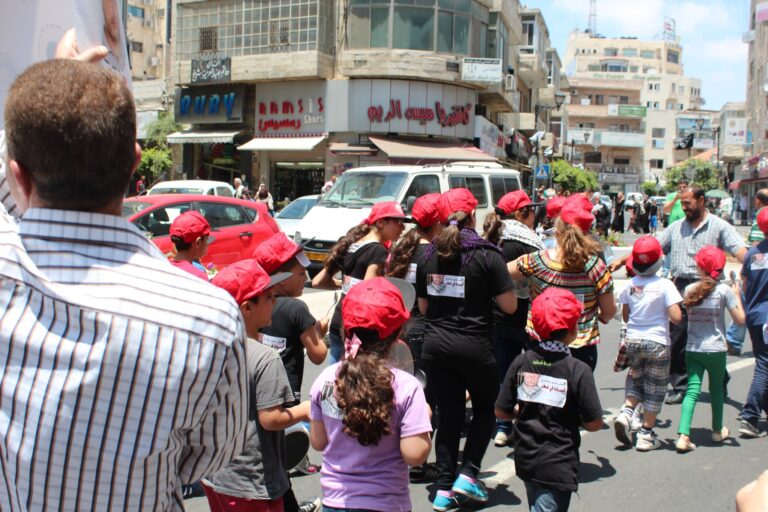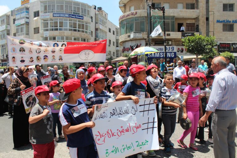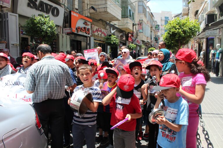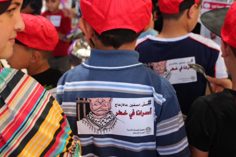 شاركت جمعية إنعاش الأسرة في الاعتصام الأسبوعي لأهالي الأسرى أمام مقر الصليب الاحمر بمدينة البيرة، أعقب ذلك تنظيم الجمعية لمسيرة قرع “الطناجر” في مقر الصليب وفي مسيرة بين دوار المنارة وسط مدينة رام الله وميدان الشهيد ياسر عرفات. وقام أطفال مخيم انعاش الأسرة الصيفي برفع لافتات حملت هاشتاغ “مش آسفين عالازعاج..اسرانا في خطر” وقرع الطناجر وترديد هتافات تضامنية مع الأسرى.