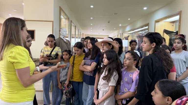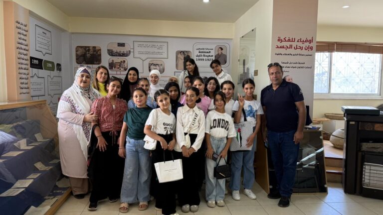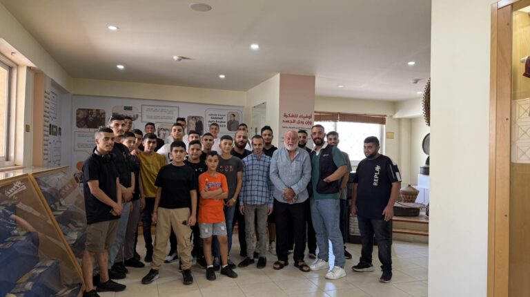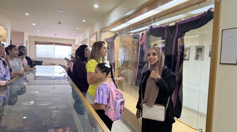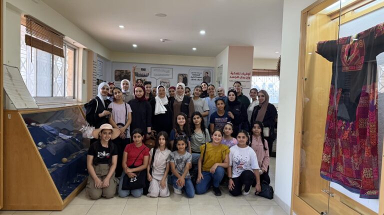 البيرة – في زيارة مميزة الى متحف التراث الشعبي الفلسطيني في جمعية انعاش الأسرة، وبتنظيم من مركز الهدف الثقافي / بلعين؛ وهي مؤسسة ثقافية تعنى بمجالات الثقافة والتراث والفن الشعبي الفلسطيني، ومركز المنتدى الثقافي – بيت عنان شمال غرب القدس. حيث شاركت مجموعة من اليافعات واليافعين في جولة تعليمية وتثقيفية للتعرف على جوانب متعددة من الهوية الثقافية الفلسطينية الأصيلة. وقد تضمنت الجولة التعرف على مقتنيات المتحف التراثية النادرة مثل؛ الأثواب الفلسطينية التقليدية من مختلف المناطق. والأدوات الفخارية وسلال القش التي كانت تستخدم في الحياة اليومية. ووثائق وصور تاريخية توثق مراحل مهمة من حياة الفلسطينيين ما قبل النكبة. إضافة إلى زيارة “الحوش”، وهو عمل فني يحاكي البيت الفلسطيني القديم، من إنتاج الفنانين الفلسطينيين سليمان منصور ونبيل عناني.
