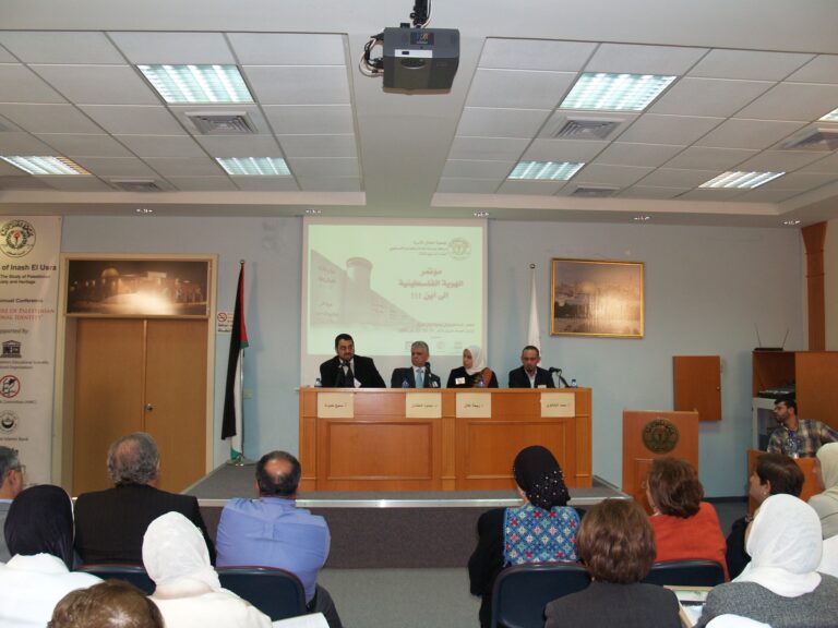 وهنا كان لا بد لأن يتصدى الشعب والقيادة الفلسطينية لهذا المخطط الرهيب… فوضعوا ضمن الميثاق القومي الفلسطيني المادة رقم خمسة والتي تنص على ضرورة الحفاظ على الشخصية الفلسطينية كصيغة لازمة لا تزول وهي تنتقل من الآباء إلى الأبناء وكذلك تنص المادة (11) في جزء منها على أن الشعب الفلسطيني في هذه المرحلة من كفاحه أن يحافظ على شخصية ومقوماتها وأن ينمي الوعي بوجودهما وأن يناهض أياً من المشروعات التي من شأنها إذابتها وإضعافها. وأقولها بكل اعتزاز أن جمعية إنعاش الأسرة بادرت لتبني مسألة التراث في نظامها الداخلي منذ تأسيسها عام (65) لأن مدلول التراث هو إثبات لوجودنا وتجسيداً لهويتنا الفلسطينية أمام الذين أنكروا هذا الوجود.