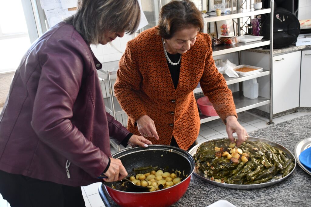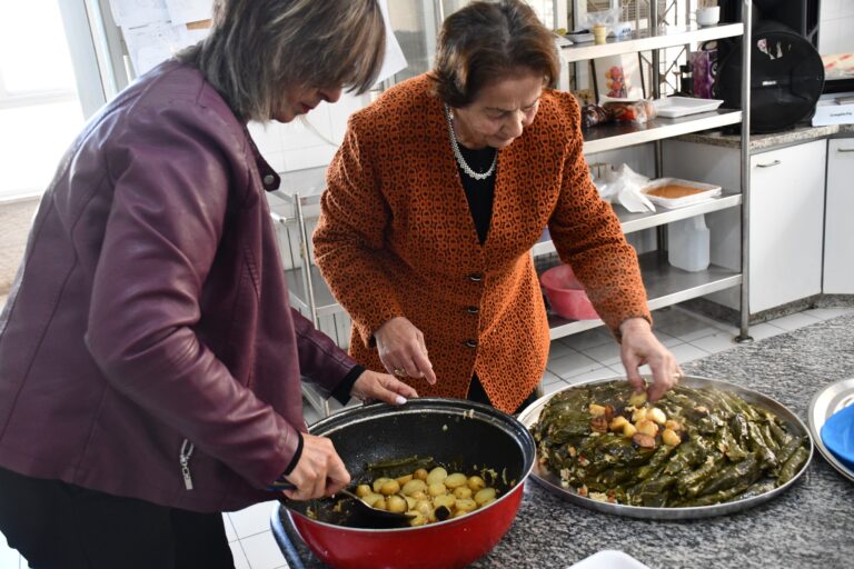 نرحب بكنّ في جمعتنا الأسبوعية “جمعة على طبخة” لقاء مجتمعي يجمعنا كنساء فلسطينيات على رابطة الود والمحبة والعطاء، على مائدة تتزيّن بطبق فلسطيني تراثي شهي، لندردش ونفضفض ونتحاور، أحيانا سنغني معا وأحيانا سنهاهي ونزغرد، وأحيانا أخرى سنسرد الحكايات الموروثة والأمثال الشعبية. وقد اجتمعنا اليوم لإعداد وتناول طبق “ورق الشول”؛ من أكلاتنا التراثية المهجورة، أكلة أمهاتنا وجداتنا، بمبادرة مشكورة من السيدة رحاب بسيسو.