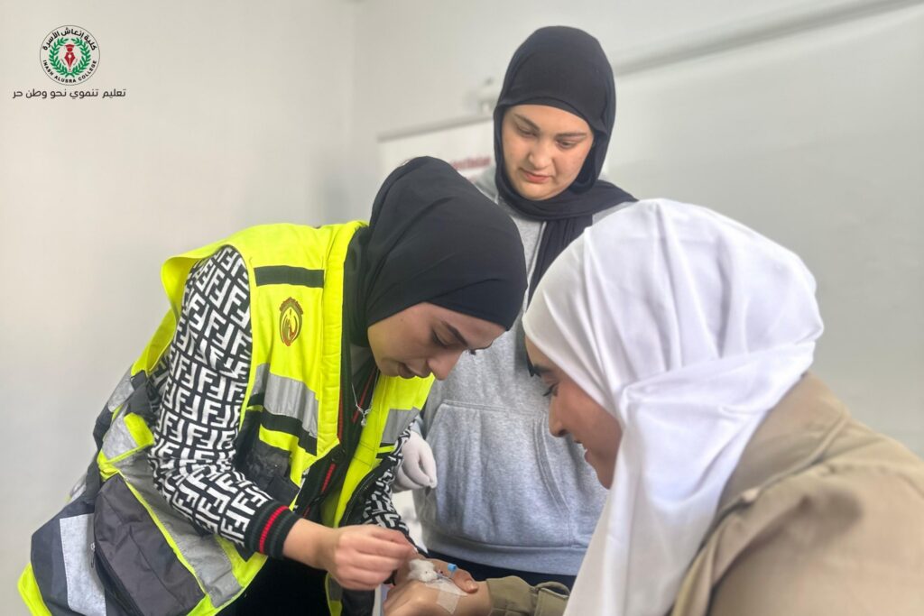 شارك طلبة التمريض في كلية إنعاش الأسرة في ورشة تدريبية حول المهارات التمريضية الأساسية، بالتعاون مع جمعية الحياة الفلسطينية الخيرية وبلدية البيرة – بيت الحكمة. وجاءت مشاركة الطلبة ضمن جهود الكلية لتعزيز الجانب العملي لديهم وتهيئتهم لسوق العمل، حيث تضمنت الورشة تدريباً عملياً مكثفاً على عدد من المهارات التمريضية الأساسية، وهدفت إلى رفع كفاءة الطلبة وصقل مهاراتهم المهنية. وتأتي هذه المشاركة في إطار حرص كلية إنعاش الأسرة على توفير فرص تدريب نوعية لطلبتها، وتعزيز الشراكات المجتمعية التي تدعم تطورهم الأكاديمي والمهني.