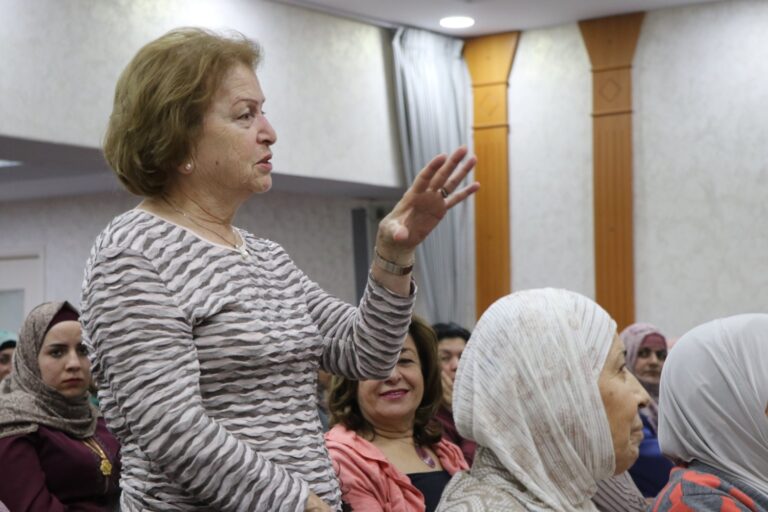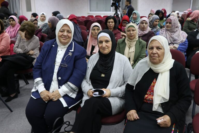 من ناحيتها أكدت رئيسة الجمعية السيدة فريدة العارف العمد أن الجمعية منذ تأسيسها تسعى لرفع مستوى وعي النساء والفتيات والطلبة بالقضايا المحيطة بهم والمتعلقة بمصير الهوية الوطنية الفلسطينية.