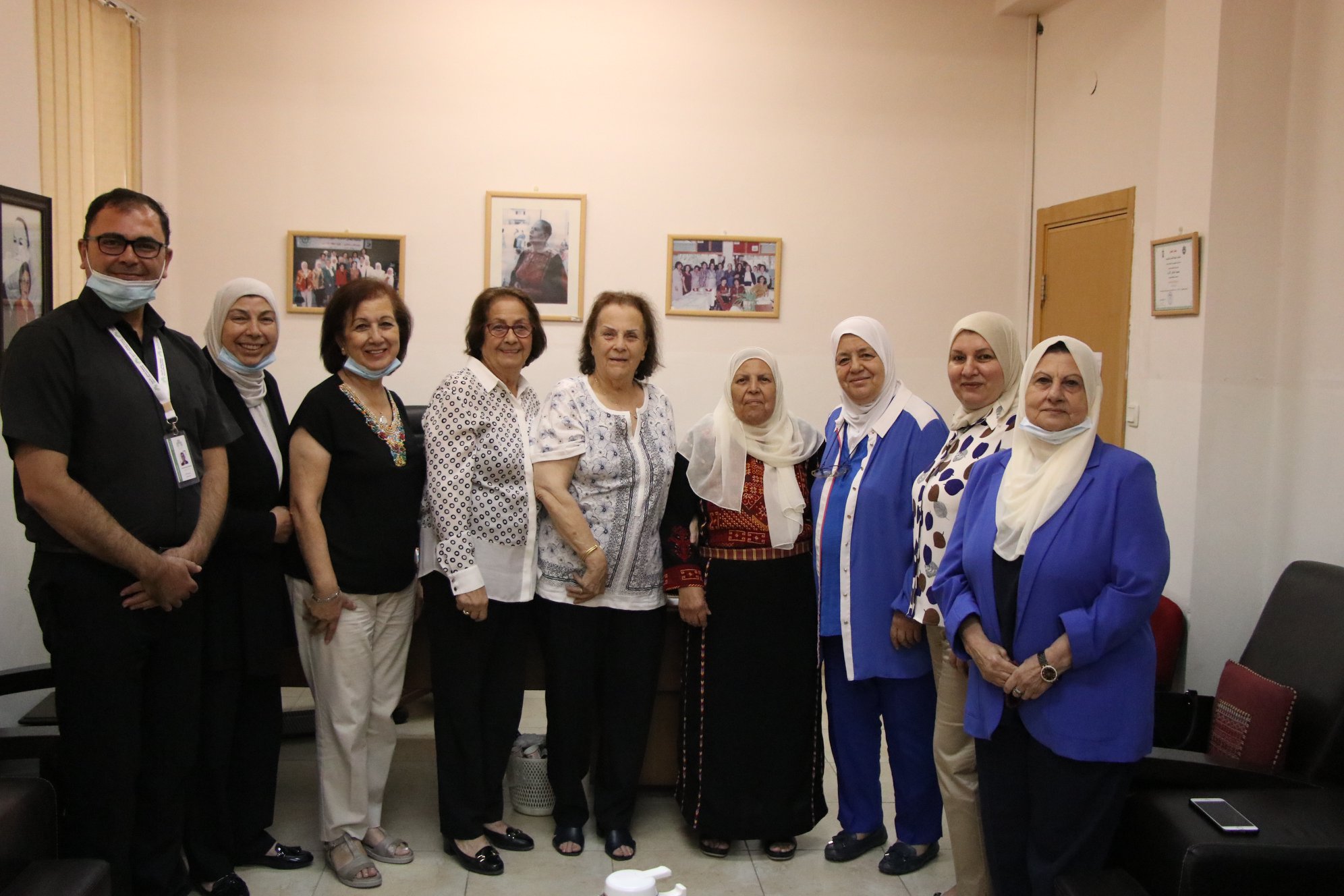 أعضاء مجلس إدارة جمعية إنعاش الأسرة :رئيسة مجلس الادارة السيدة رسمية المسروجي ونائب الرئيسة السيدة سمر التيجاني وأمينة السر السيدة هاجر وهدان، والسيدات سوسن العامور و رحاب بسيسو و ديانا عبد النور ومديرها العام أ. محمد خالد في وداع السيدة فريدة العمد رئيسة مجلس الإدارة السابقة قُبيل سفرها.