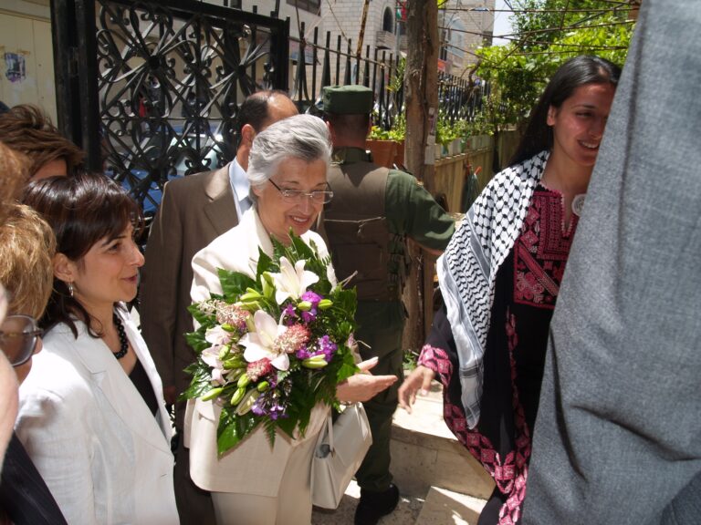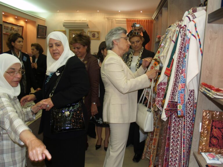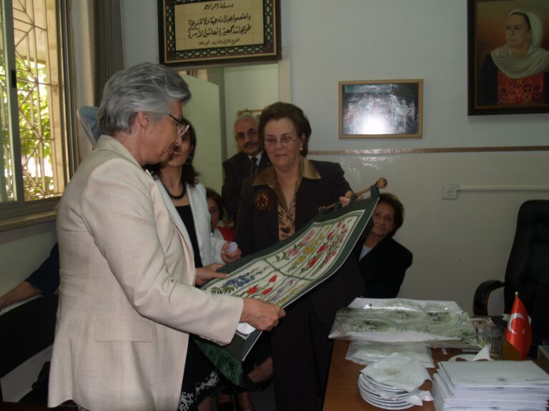قامت السيدة سمرا سيزر عقيلة الرئيس التركي والوفد التركي المرافق بزيارة جمعية إنعاش الأسرة حيث رافقتها السيدة انتصار الوزير “أم جهاد” عضو المجلس التشريعي وكان في استقبالهم السيدة فريدة العمد رئيسة الجمعية والأعضاء والموظفين وقد قام الوفد بزيارة متحف التراث الشعبي الفلسطيني ومعرض المطرزات الفلسطينية وحضانة إنعاش الأسرة حيث تم توزيع الهدايا للأطفال وحضور الدبكة الشعبية لفتيات المنزل وكذلك الاطلاع على نشاطات الجمعية المختلفة من خلال شريط فيديو تم عرضه في قاعة الجمعية.