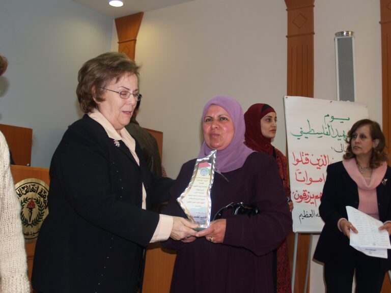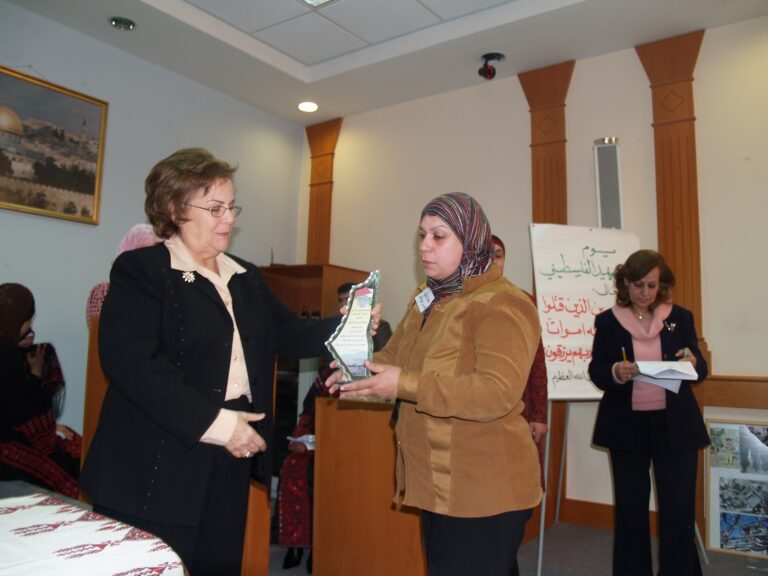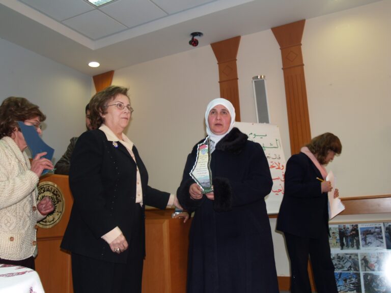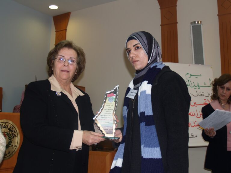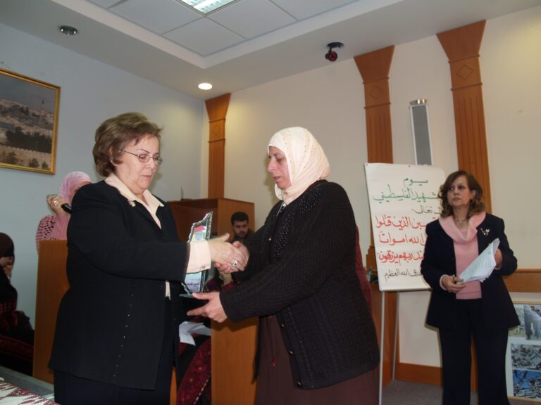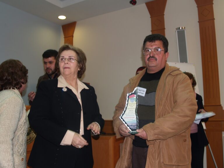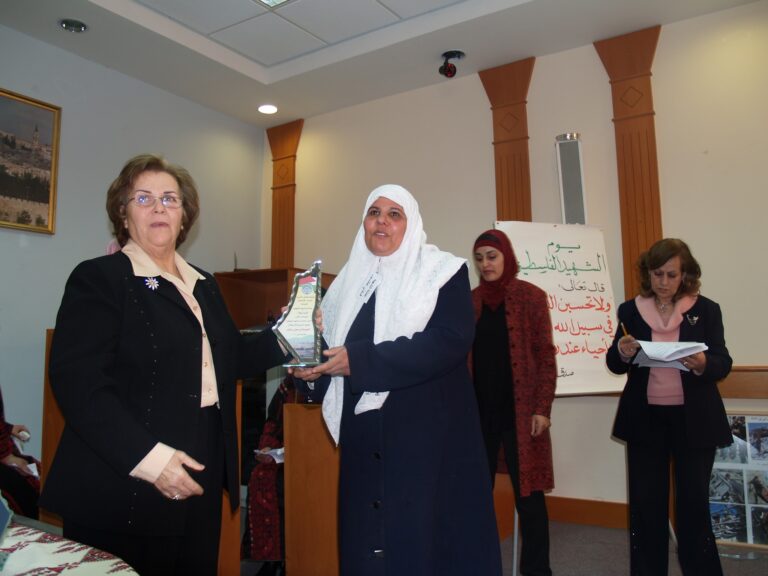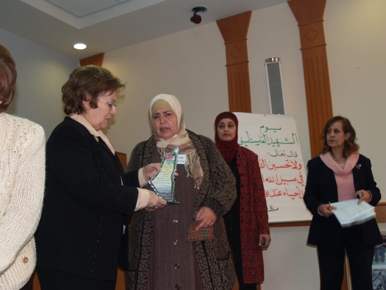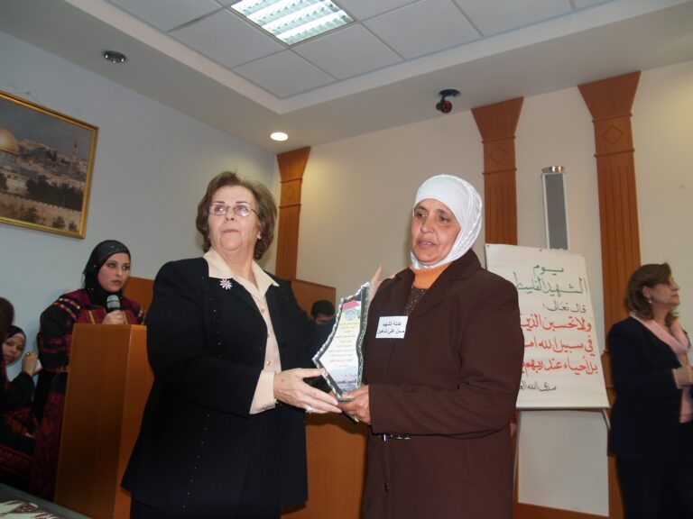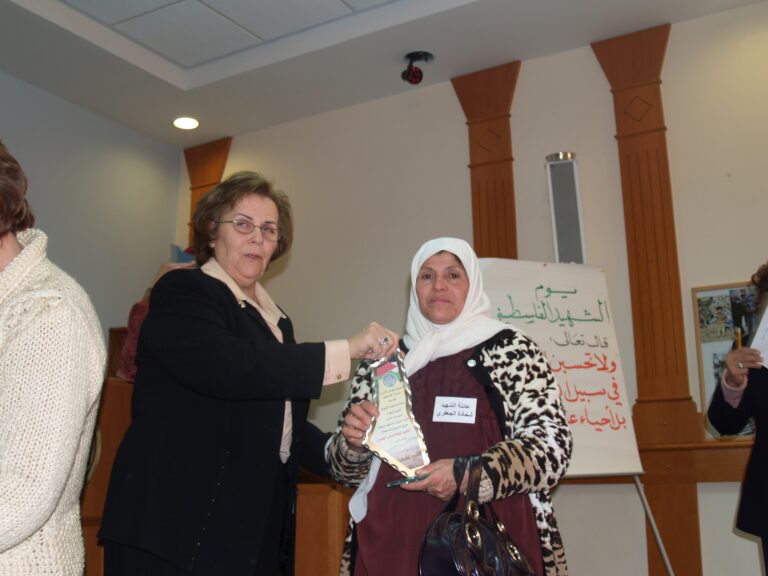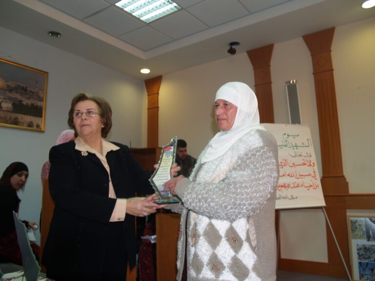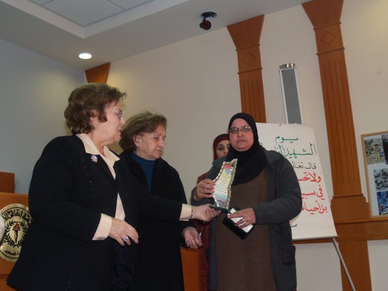 في أجواء من الوفاء والتقدير لتضحيات شهداء فلسطين، نظّمت جمعية إنعاش الأسرة فعالية خاصة لإحياء ذكرى يوم الشهيد الفلسطيني، وذلك يوم الثلاثاء الموافق 7 شباط 2006 في قاعة الفاروق بمقر الجمعية في مدينة البيرة. حضر الفعالية عدد من عائلات الشهداء الذين قدموا أغلى ما لديهم فداءً للوطن، حيث سادت المناسبة مشاعر من الفخر والاعتزاز، إلى جانب الحزن النبيل الذي يرافق ذكرى من رحلوا دفاعًا عن فلسطين. وكان من بين الحضور السيدتان ليلى أكرم نوري وفريدة العمد، اللتان شاركتا بكلمات مؤثرة عبّرتا فيها عن أهمية هذه المناسبة في ترسيخ ثقافة الوفاء للشهداء، وأكدتا على ضرورة استمرار دعم عائلاتهم والوقوف إلى جانبهم.