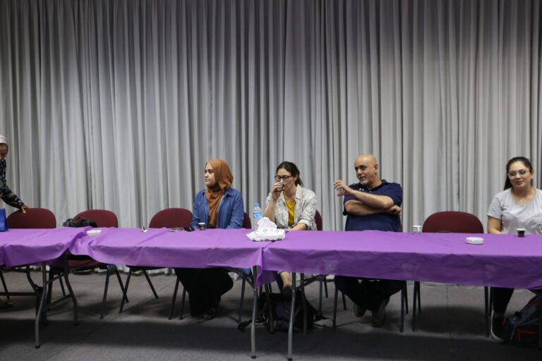 جانب من زيارة وفد من الجالية الفلسطينية في ولاية نيوجيرسي للجمعية والتعرف على أقسامها وأنشطتها المتنوعة.