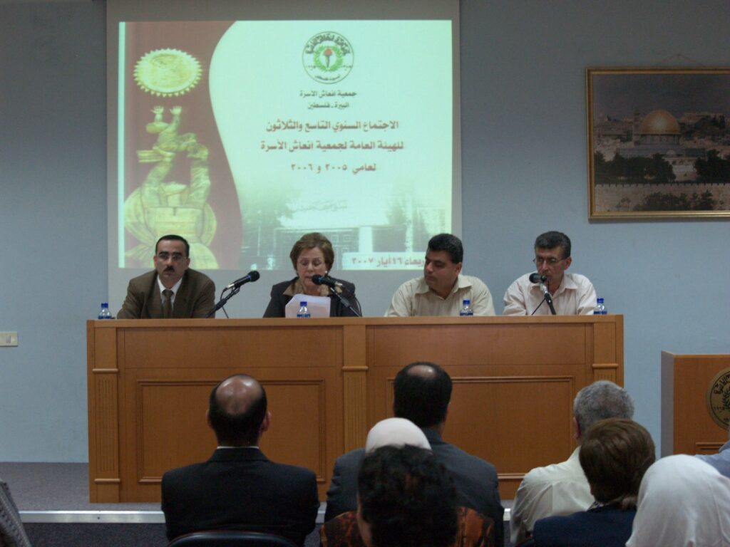 عقدت جمعية إنعاش الأسرة اجتماعها السنوي التاسع والثلاثين للهيئة العامة، وذلك لمناقشة التقريرين الإداري والمالي لعامي 2005 و2006. وقد ترأست الاجتماع السيدة فريدة العمد، رئيسة الجمعية، بحضور أعضاء الهيئة الإدارية والهيئة العامة. استعرضت السيدة العمد أبرز إنجازات الجمعية خلال العامين، مؤكدة على التزام الجمعية برسالتها في دعم المرأة الفلسطينية وتعزيز دورها في المجتمع، إلى جانب تطوير البرامج التنموية والتعليمية التي تقدمها الجمعية