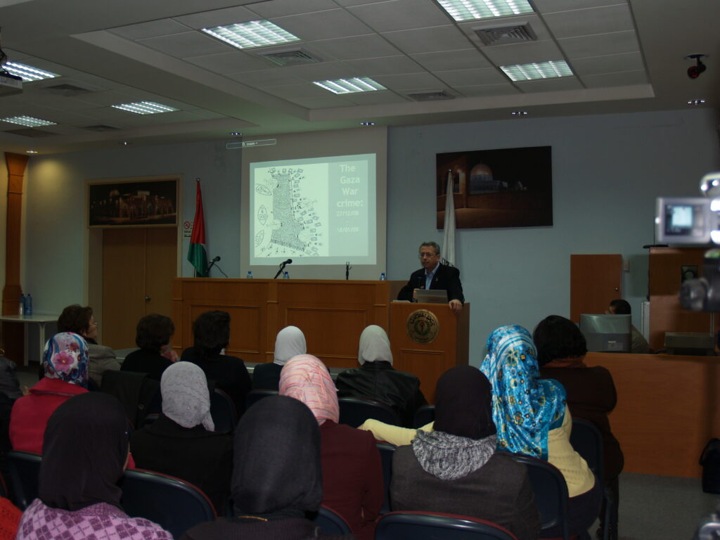 نظمت اللجنة الثقافية للجمعية لقاءً خاصاً مع الدكتور مصطفى البرغوثي أمين عام المبادرة الوطنية الفلسطينية وبحضور الهيئة الإدارية وحشد غفير من موظفي وموظفات وطالبات الجمعية و”كلية إنعاش الأسرة”. وتحدث الدكتور البرغوثي حول الوضع السياسي الراهن وحرب إسرائيل الأخيرة وعدوانها على قطاع غزة وكذلك ممارسات الاحتلال الإسرائيلي ابان الحرب وتركيزه على قتل عدد كبير من المواطنين وإصابة العدد الأكبر والتسبب في الأمراض المزمنة وكان ذلك واضحاً وجلياً في استخدام الإسرائيليين لعدد كبير جداً وضخم من قنابل الفسفور المحرم دولياً
