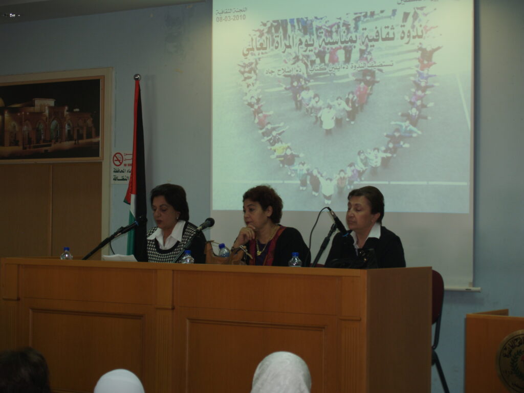 بحضور حشد غفير من أعضاء الهيئة الإدارية والهيئة العامة وموظفات الجمعية وطالبات كلية إنعاش الأسرة عقدت اللجنة الثقافية ندوة خاصة بيوم المرأة العالمي، حيث افتتحت الندوة السيدة عفاف عقل عضو الهيئة الإدارية للجمعية ورئيسة اللجنة الثقافية بترحيبها بالحضور وعرّجت على دور المرأة في الماضي والحاضر مع نبذة تاريخية عن تخصيص يوم الثامن من آذار للاحتفال بيوم المرأة العالمي وعن خصوصية المرأة الفلسطينية في بلد له خصوصية (خصوصية المكان، والدين، والتاريخ، …) مؤكدة علة ريادة المرأة الفلسطينية في كافة المجالات وما لها من دور أساسي كفله لها الدين الإسلامي الحنيف وكافة الشرائع السماوية، وكذلك الدستور الفلسطيني