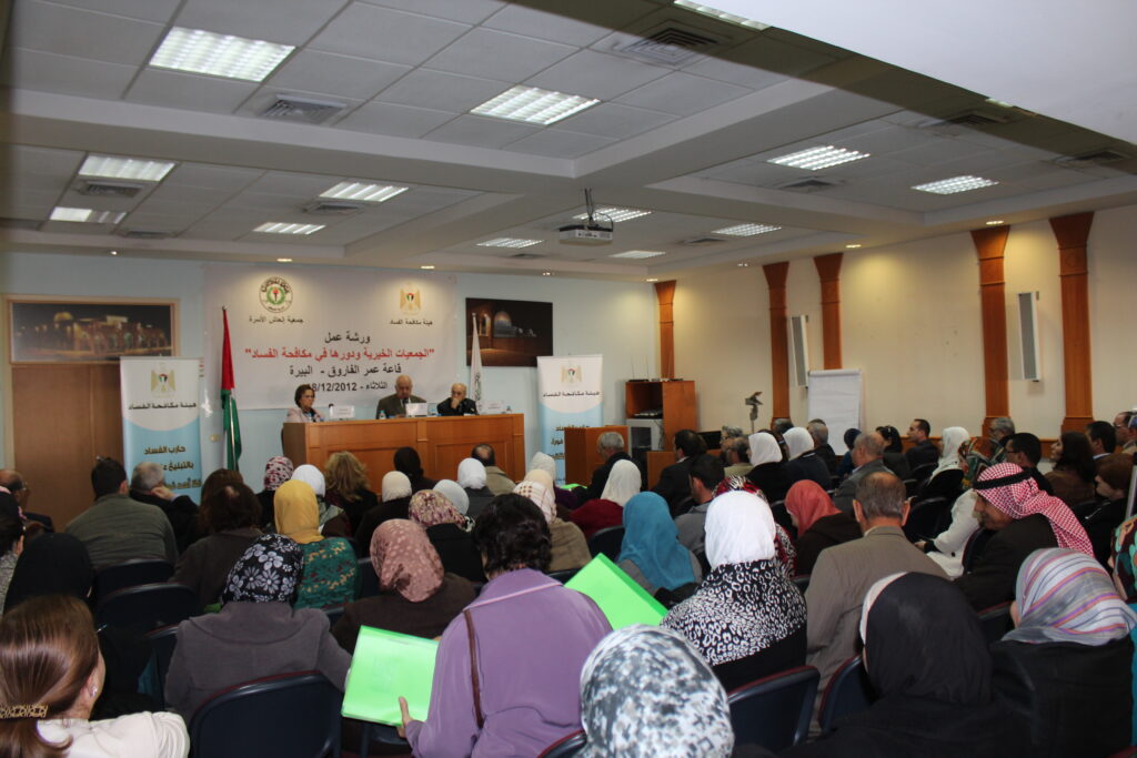 عقدت جمعية انعاش الأسرة بالشراكة مع هيئة مكافحة الفساد، لقاء في قاعة “الفاروق” التابعة للجمعية، بعنوان : “الجمعيات الخيرية وأثرها في مكافحة الفساد” وذلك ضمن اتفاقية الشراكة التي تم التوقيع عليها في حزيران الماضي بين الجمعية والهيئة. وحضر الورشة، رؤساء وأعضاء الهيئات الإدارية للجمعيات الخيرية في فلسطين وممثلون عن جمعية مدققي الحسابات الفلسطينية وجمعية المحكّمين وغيرهم من الدارسين والباحثين والمهتمين